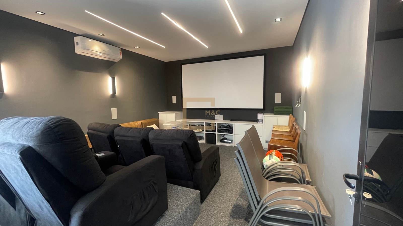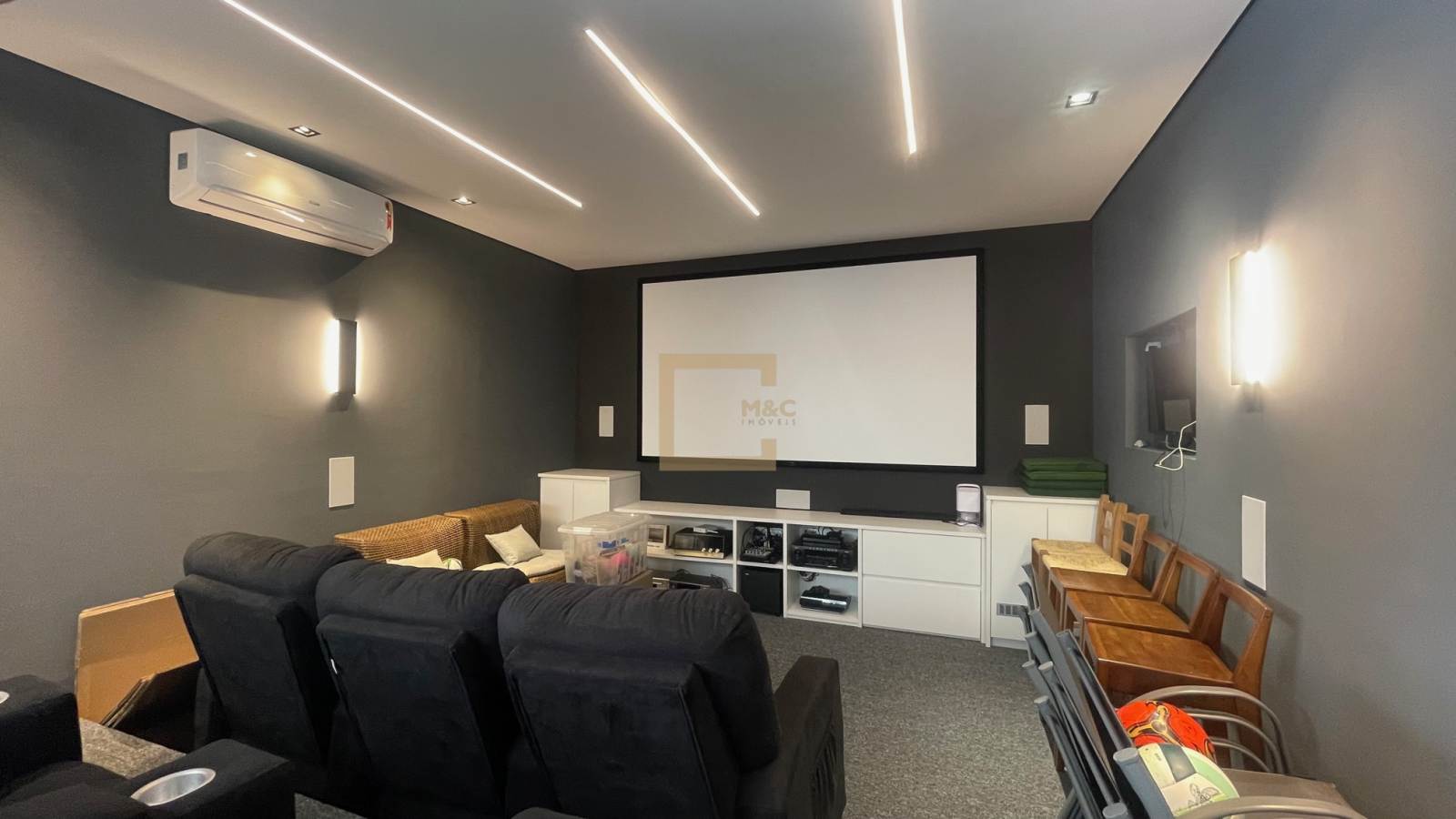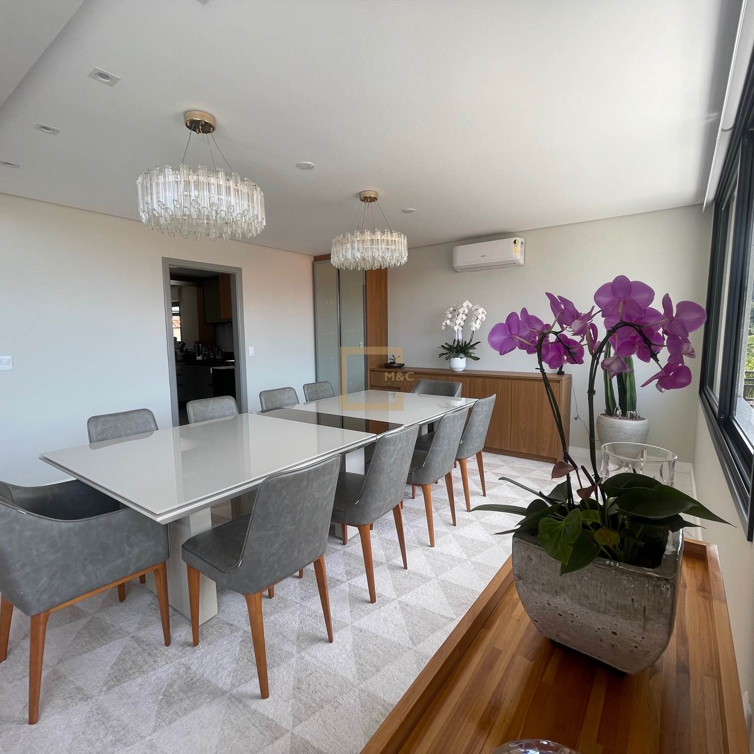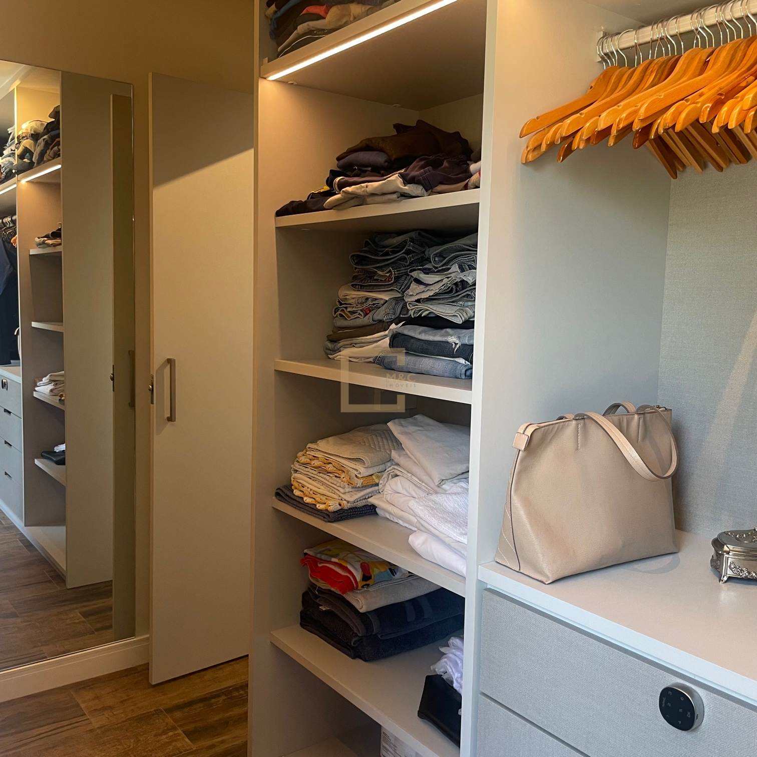 4 suítes sendo máster com closet, hidromassagem e varanda, , repleta de armários, ar-condicionado, iluminação em LED, elevador, escritório, amplo living vários ambientes com lareira, pé direito alto, sala de jantar, adega, copa e cozinha planejada, sala de cinema, espaço gourmet com churrasqueira, piscina aquecida com prainha, jardim, espaço pet.