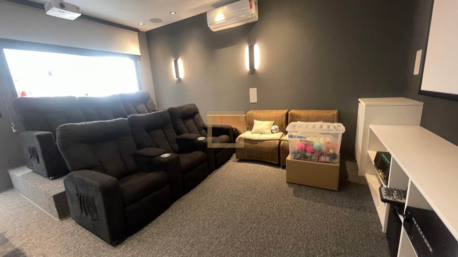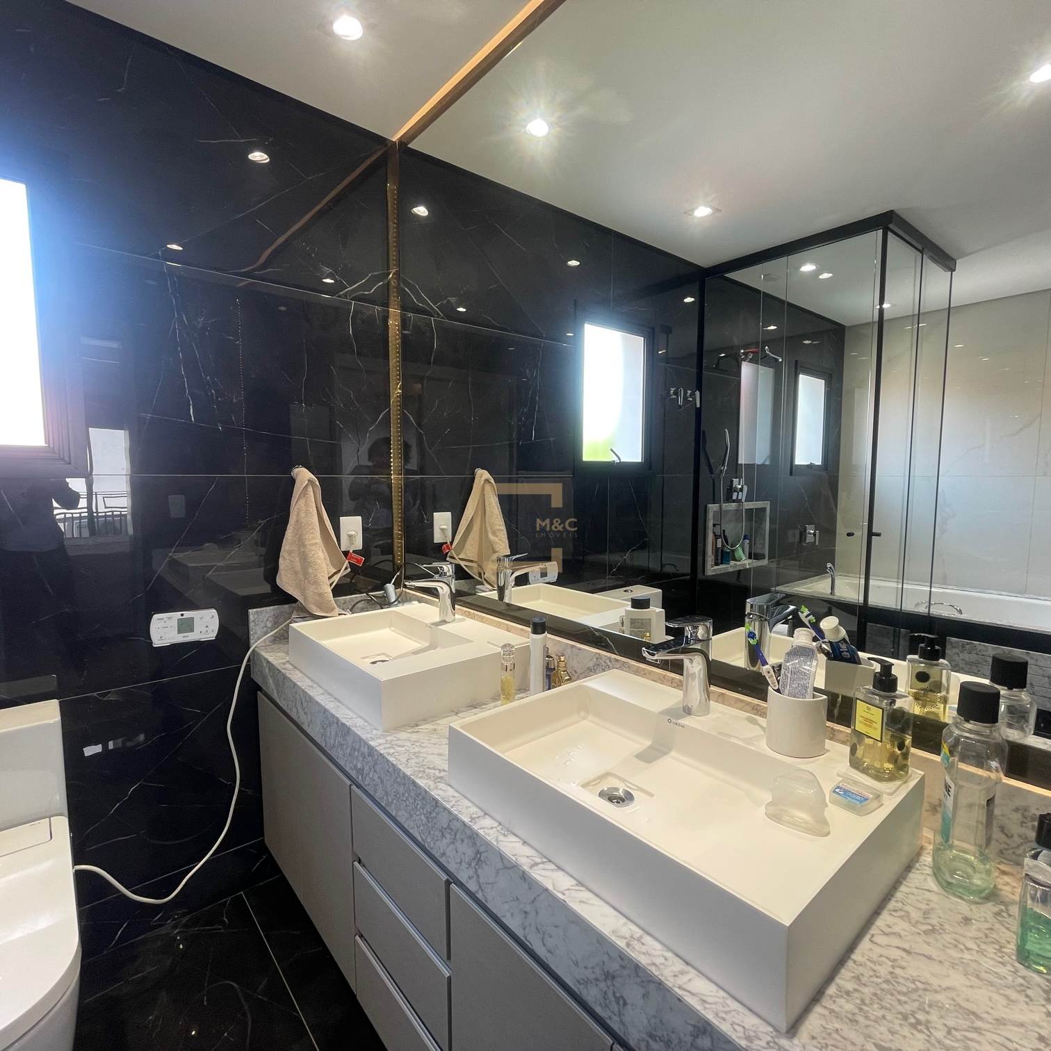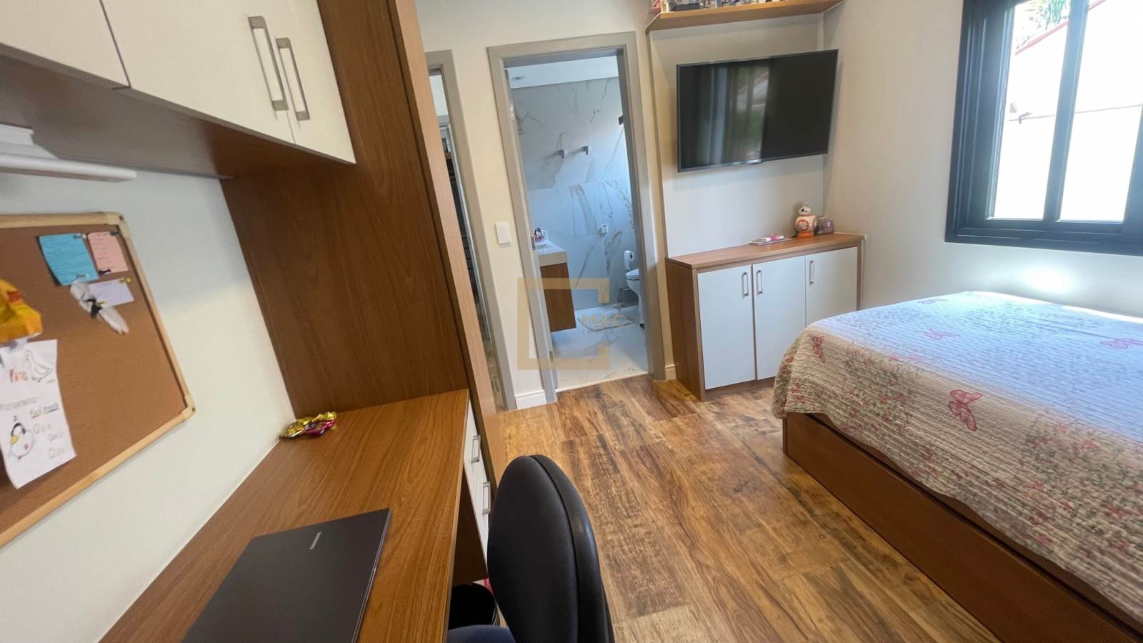4 suítes sendo máster com closet, hidromassagem e varanda, , repleta de armários, ar-condicionado, iluminação em LED, elevador, escritório, amplo living vários ambientes com lareira, pé direito alto, sala de jantar, adega, copa e cozinha planejada, sala de cinema, espaço gourmet com churrasqueira, piscina aquecida com prainha, jardim, espaço pet.