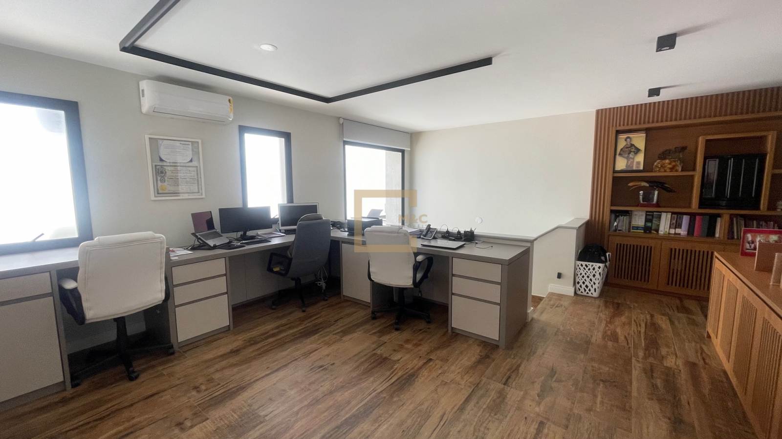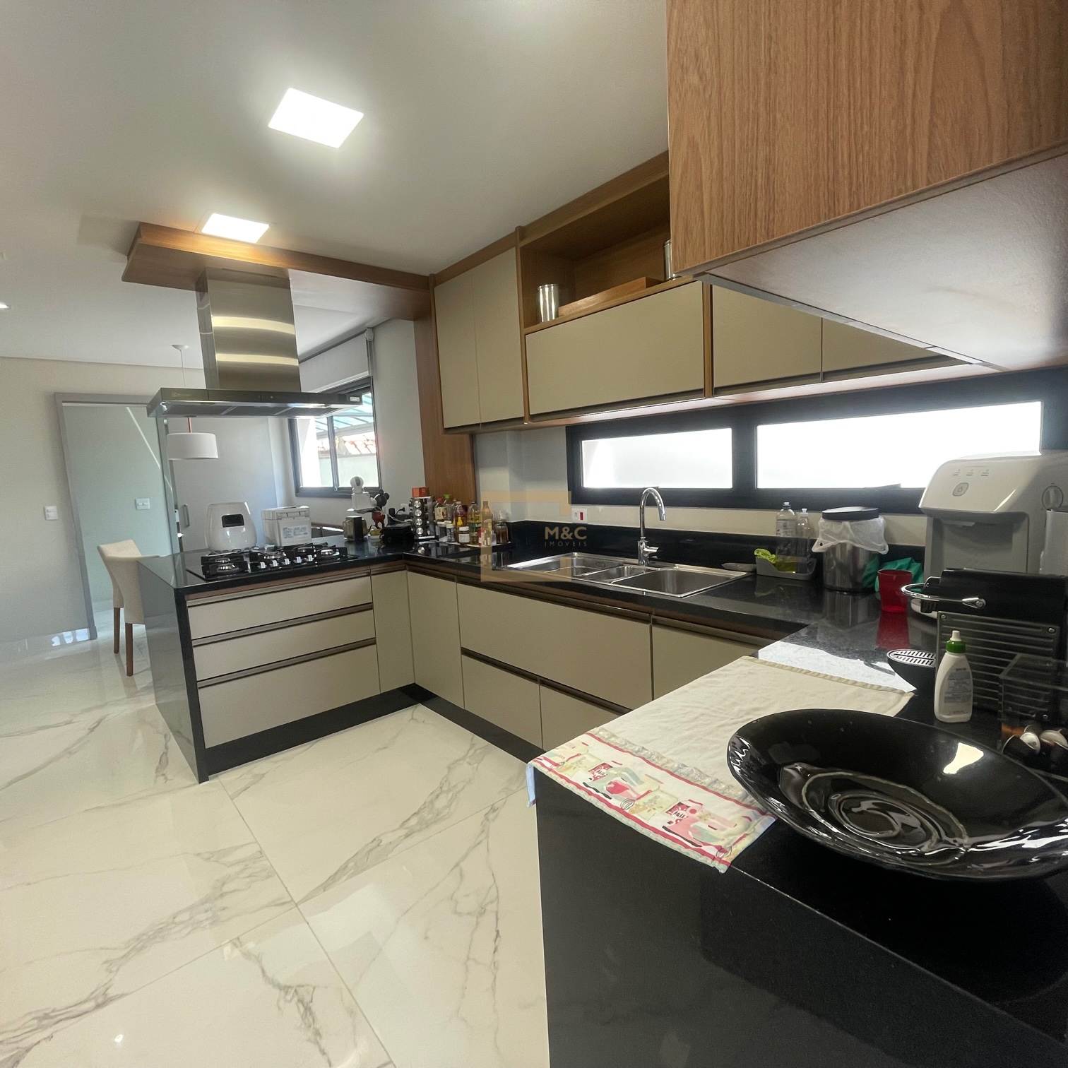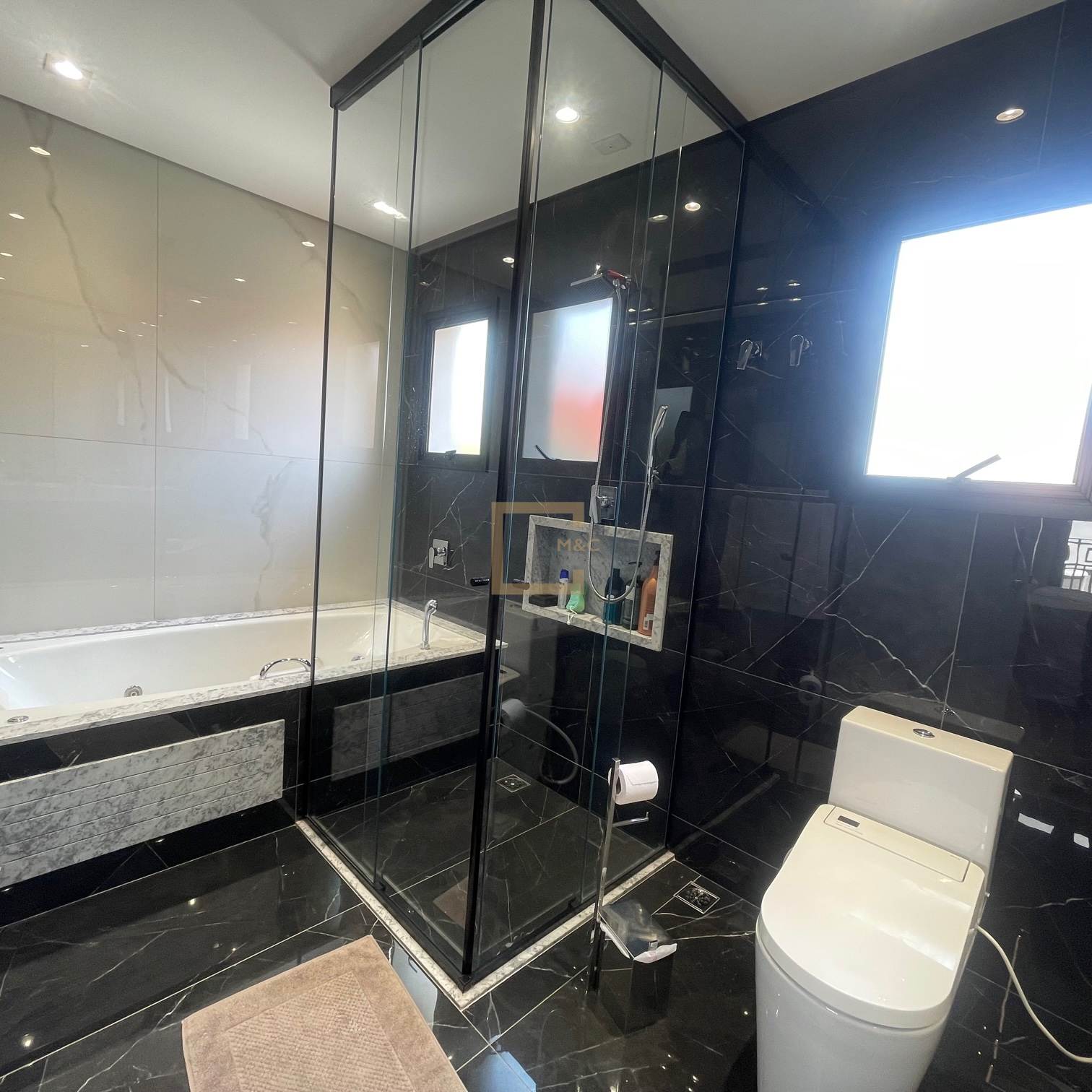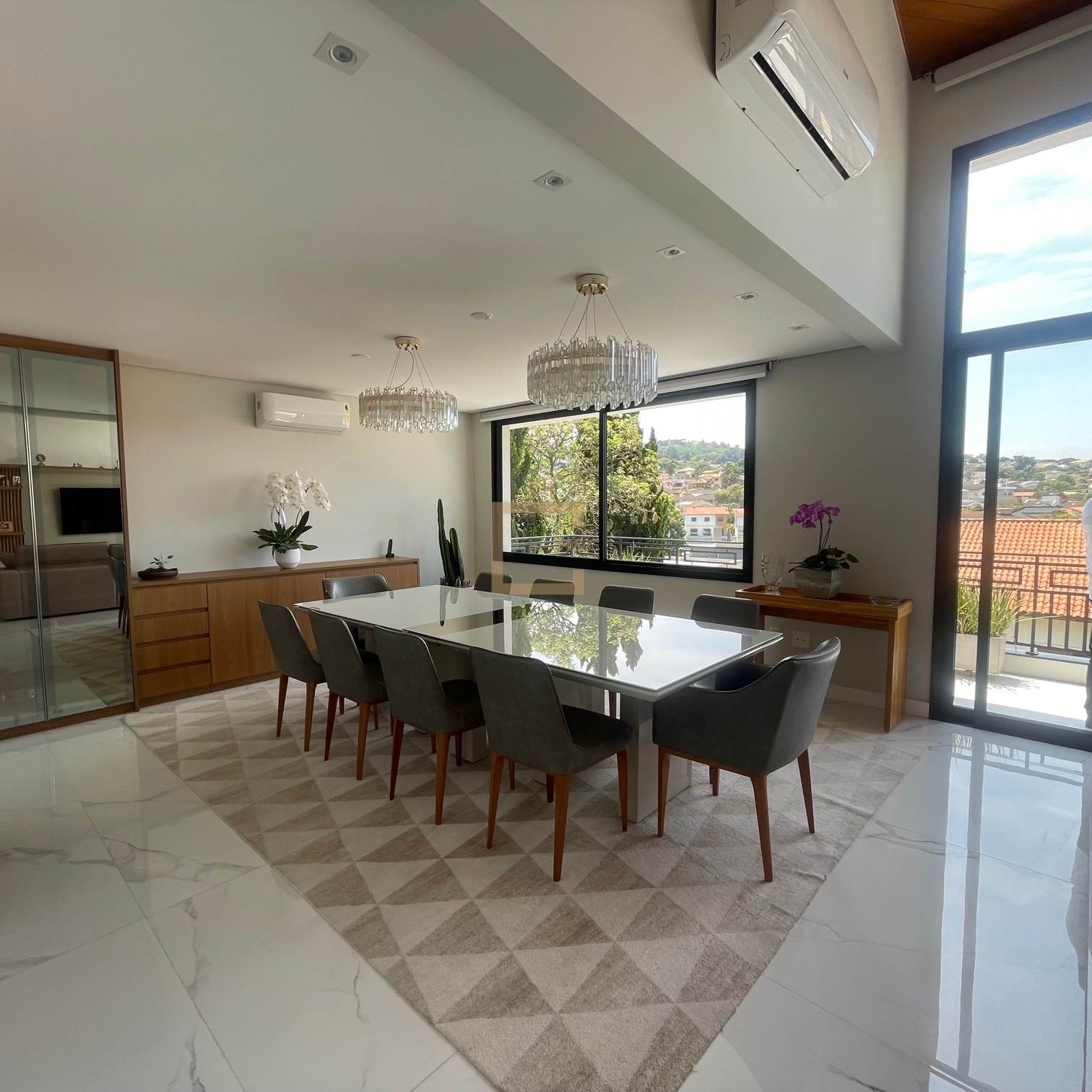 4 suítes sendo máster com closet, hidromassagem e varanda, , repleta de armários, ar-condicionado, iluminação em LED, elevador, escritório, amplo living vários ambientes com lareira, pé direito alto, sala de jantar, adega, copa e cozinha planejada, sala de cinema, espaço gourmet com churrasqueira, piscina aquecida com prainha, jardim, espaço pet.
