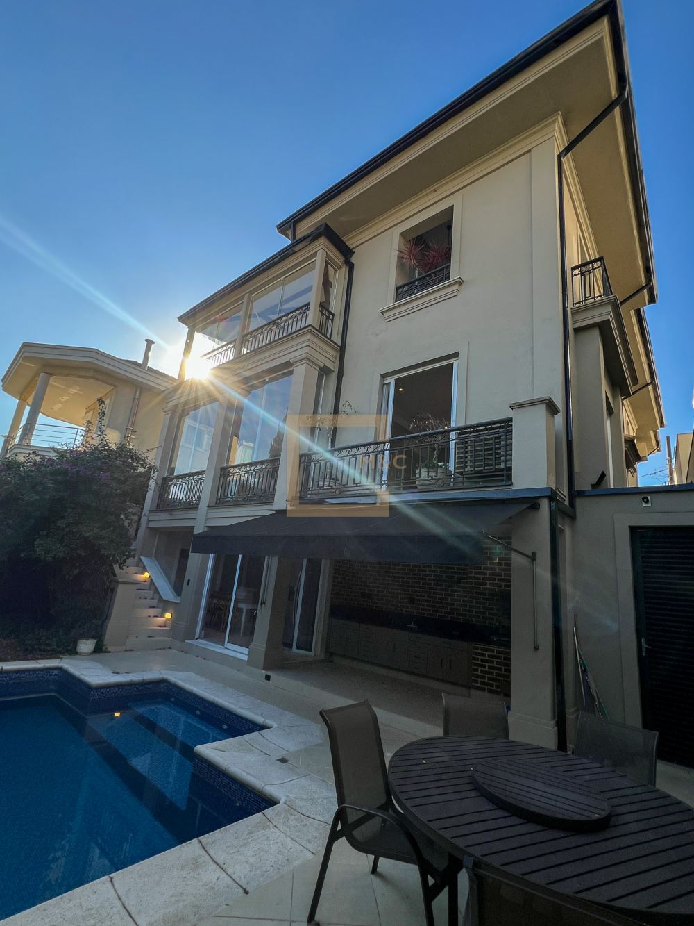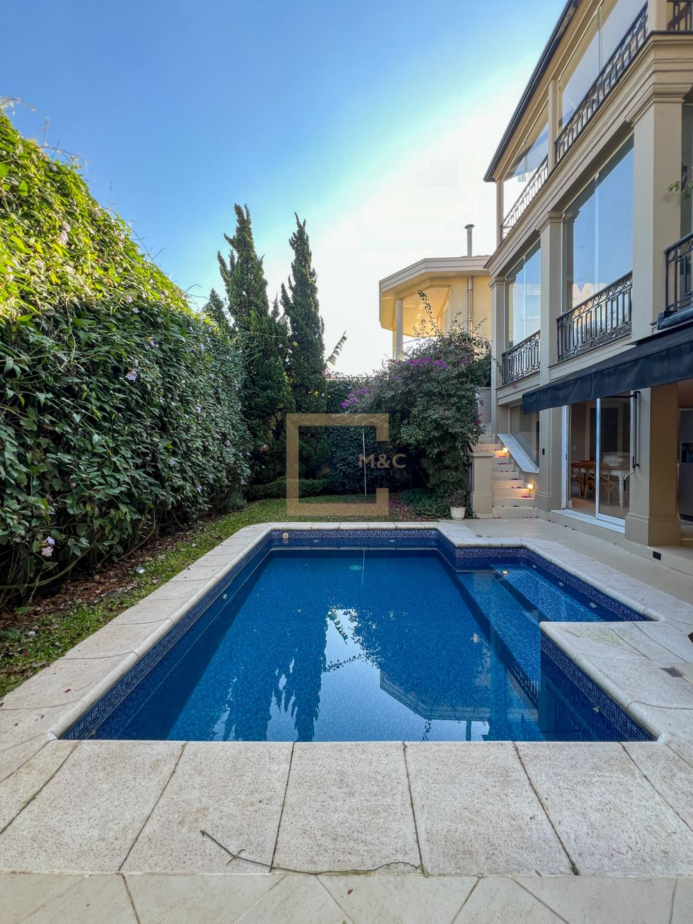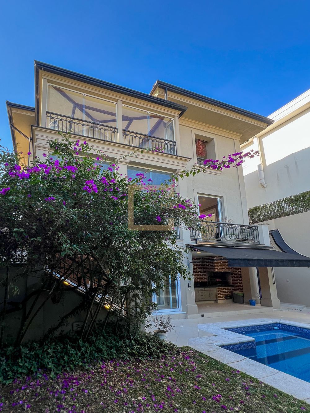 Para o lazer, a casa possui uma piscina aquecida, sauna e uma área gourmet completa.