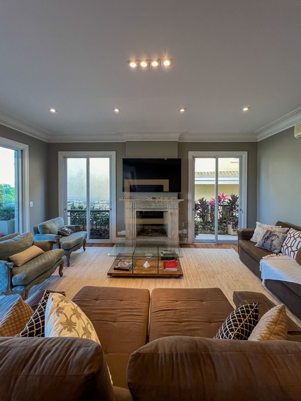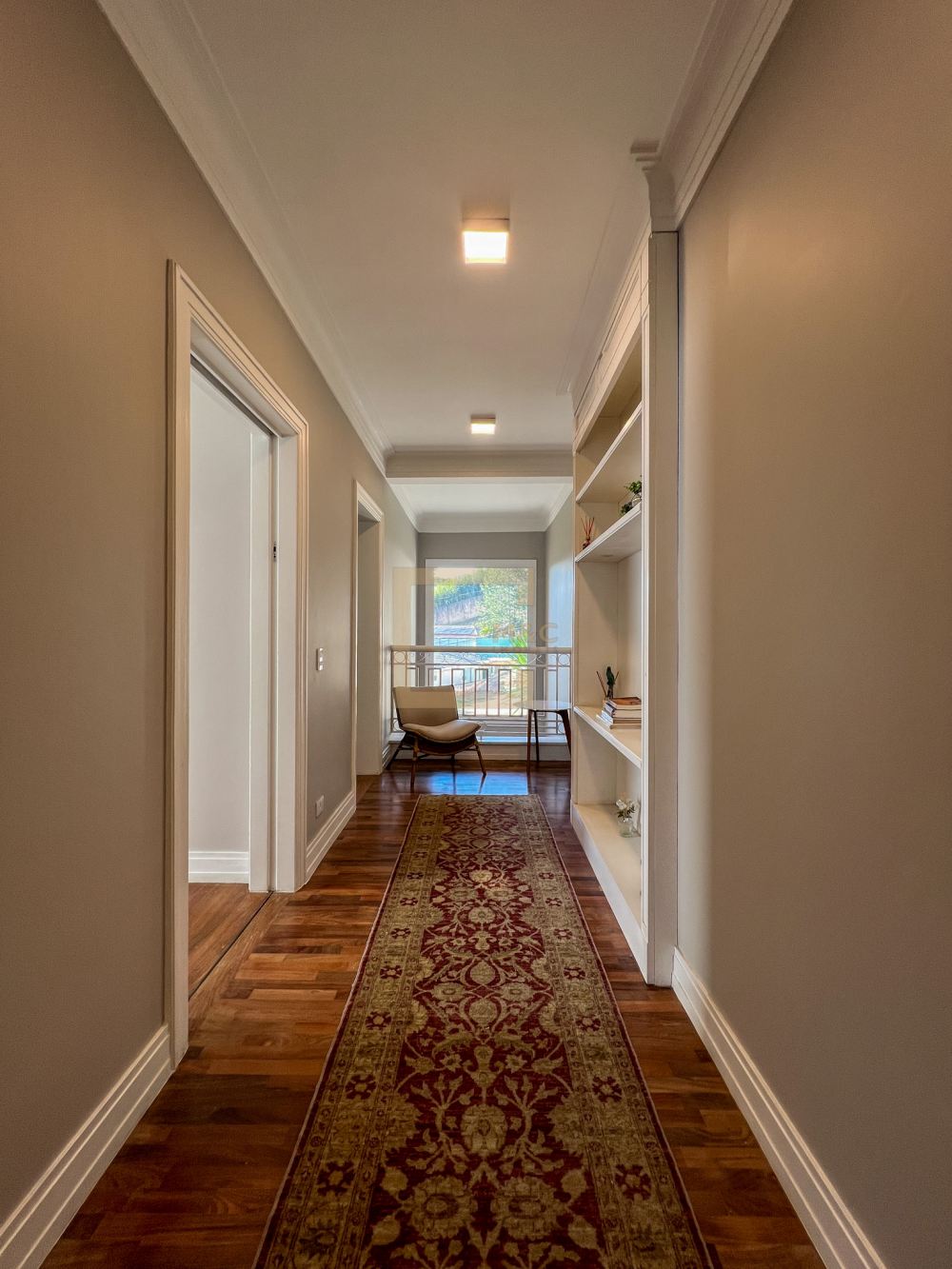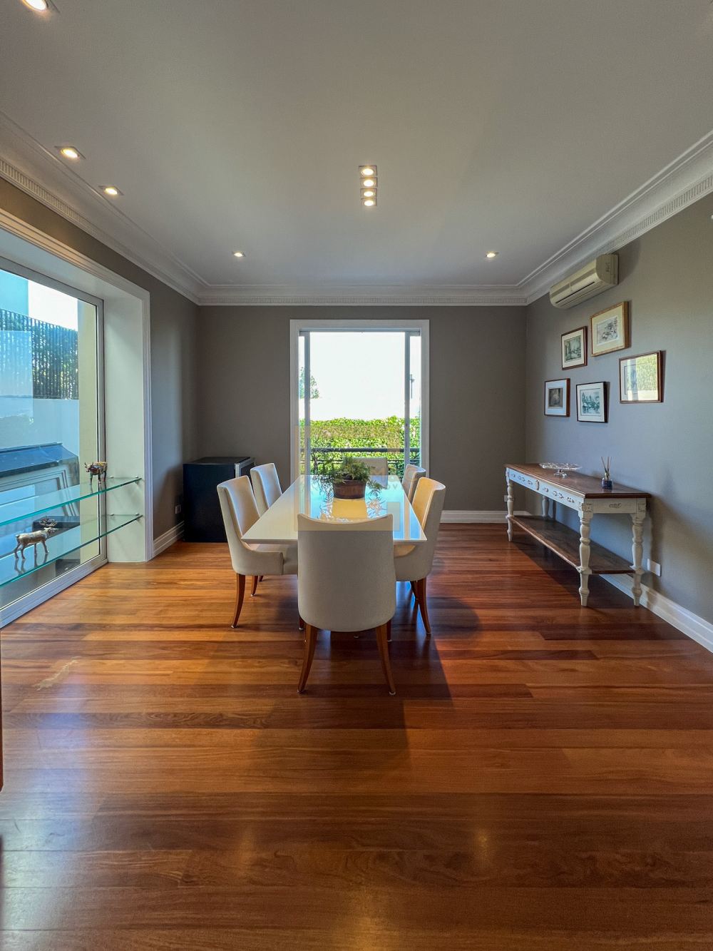 A residência passou por uma reforma completa, atualizando-a com um design moderno e funcional.