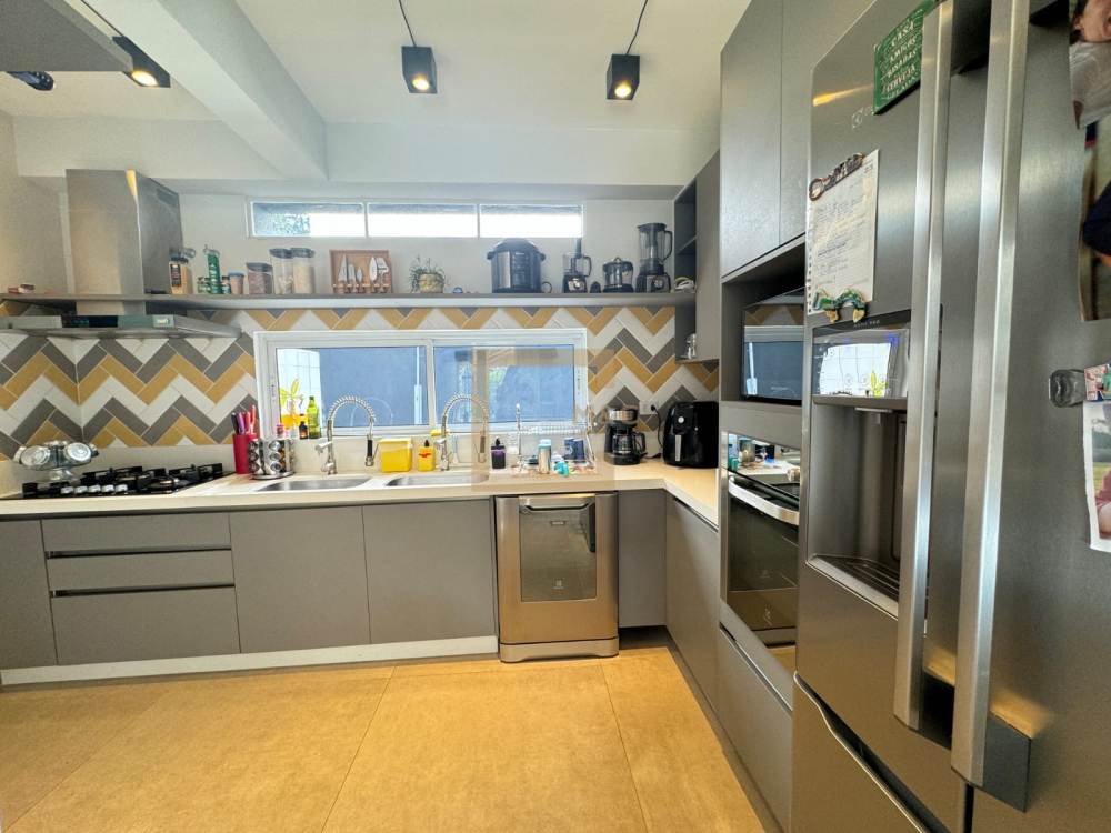 Living com pé direito duplo, escritório, lavabo, cozinha completa de eletrodomésticos, sala de almoço,