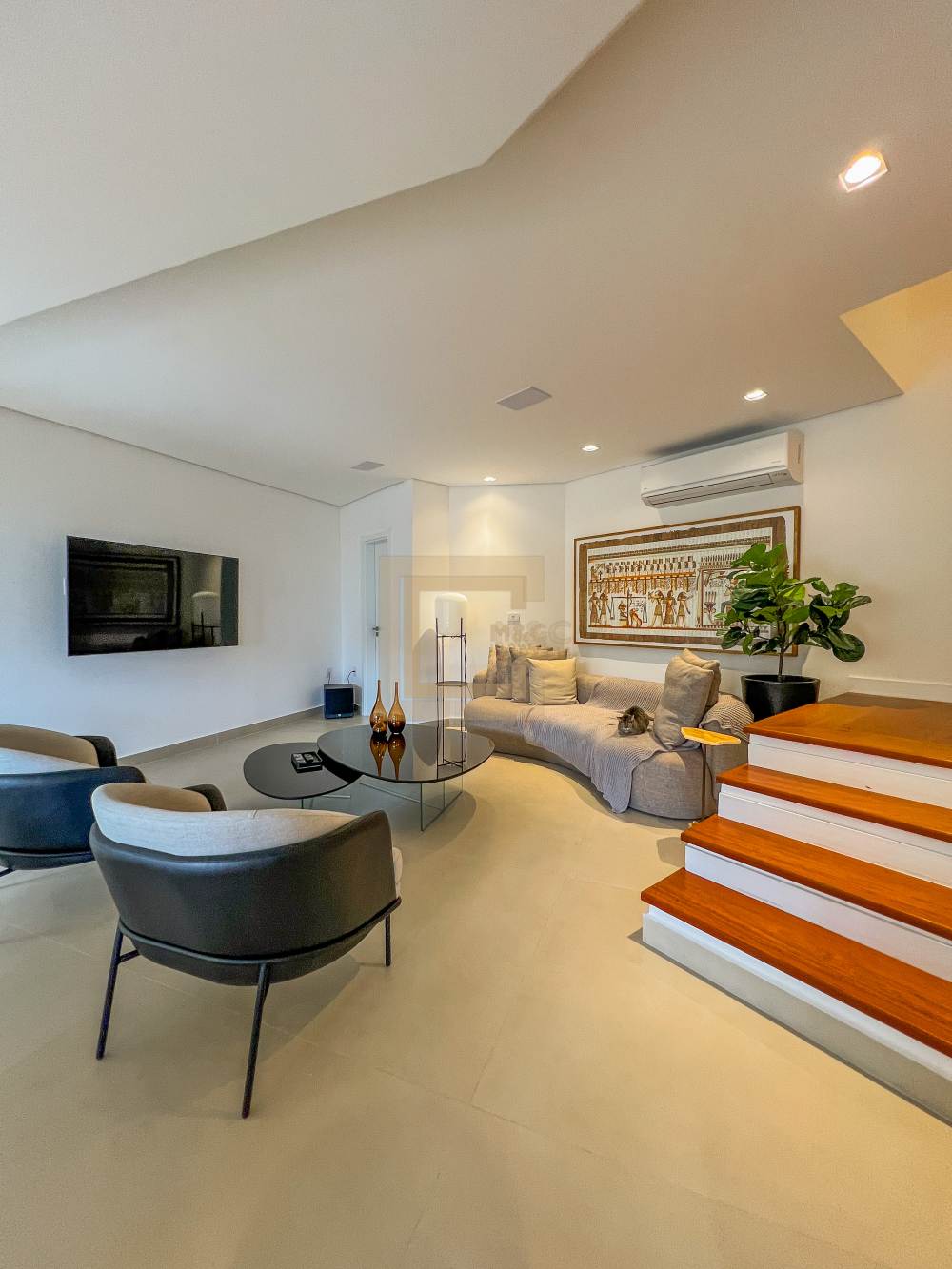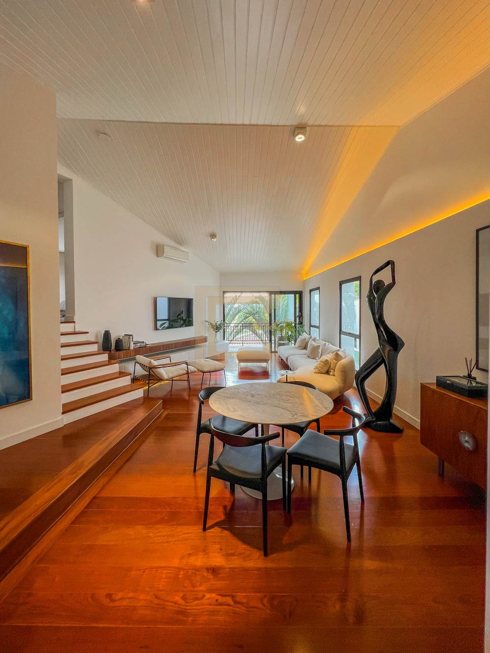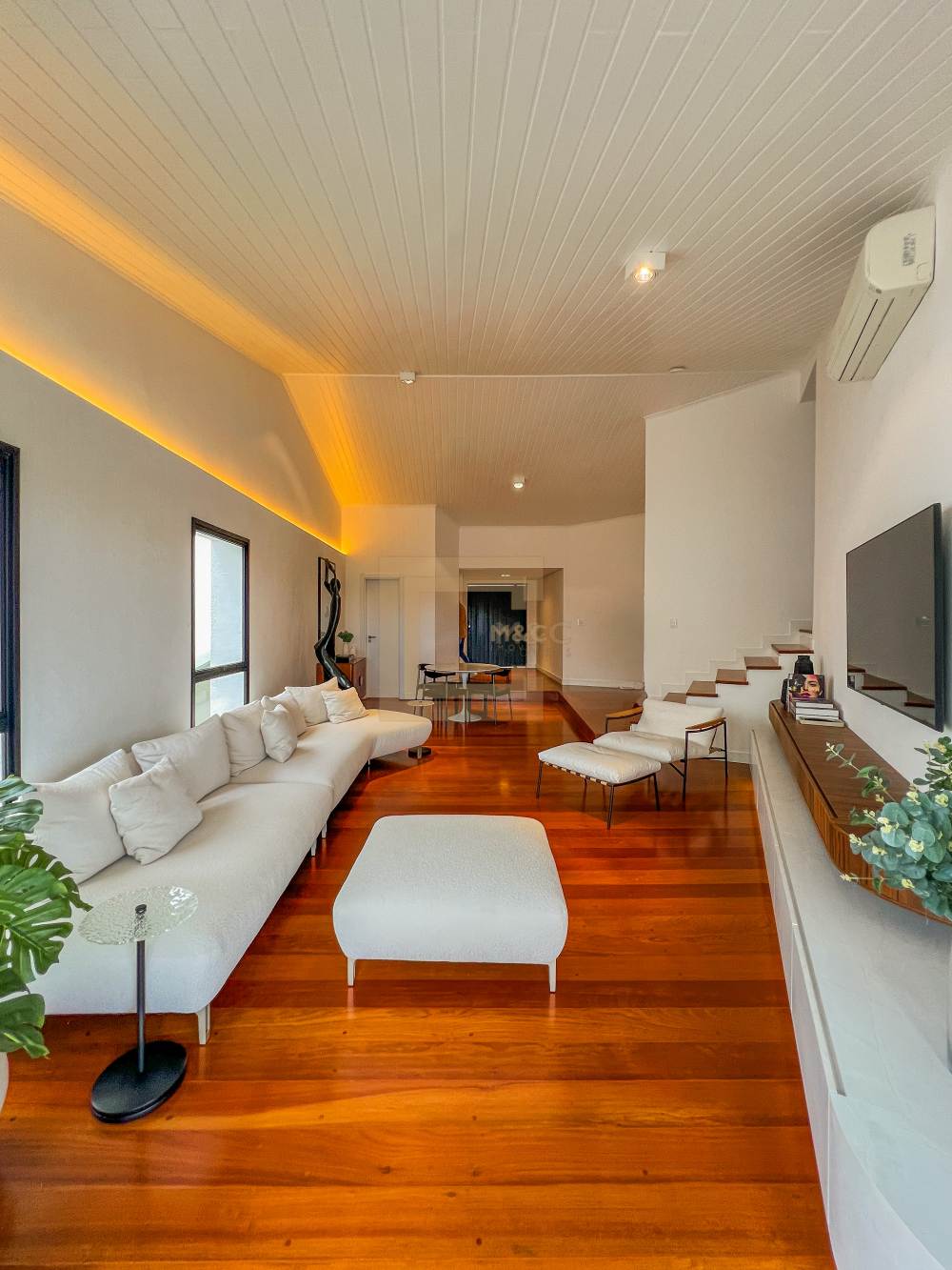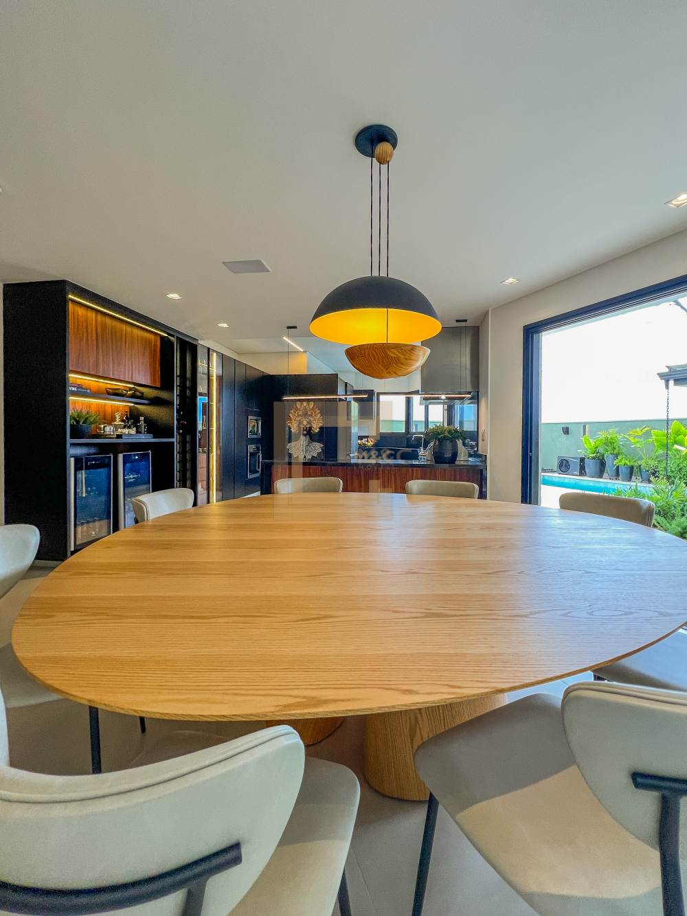 Sala de estar e TV, integradas ao espaço gourmet e a cozinha, dispensa