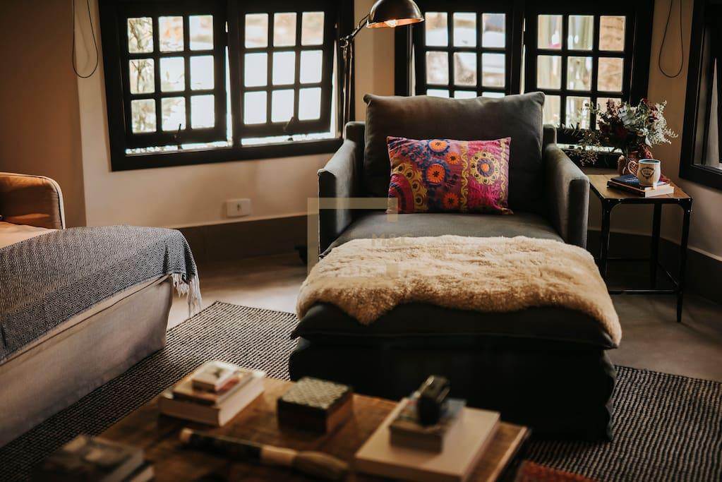 Todo o mobiliário é composto por lojas como Artefacto, Design da Villa entre outros.