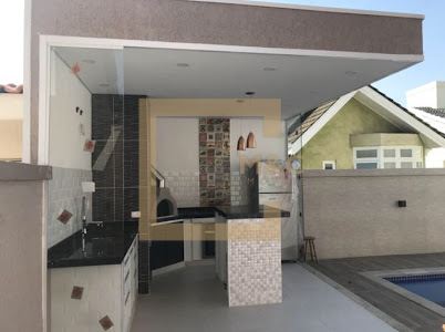 Belo espaço gourmet, com churrasqueira, forno pizza, ilha central, bancada de apoio, integrado à piscina que proporciona momentos agradáveis.