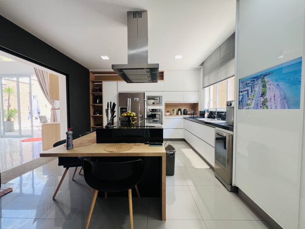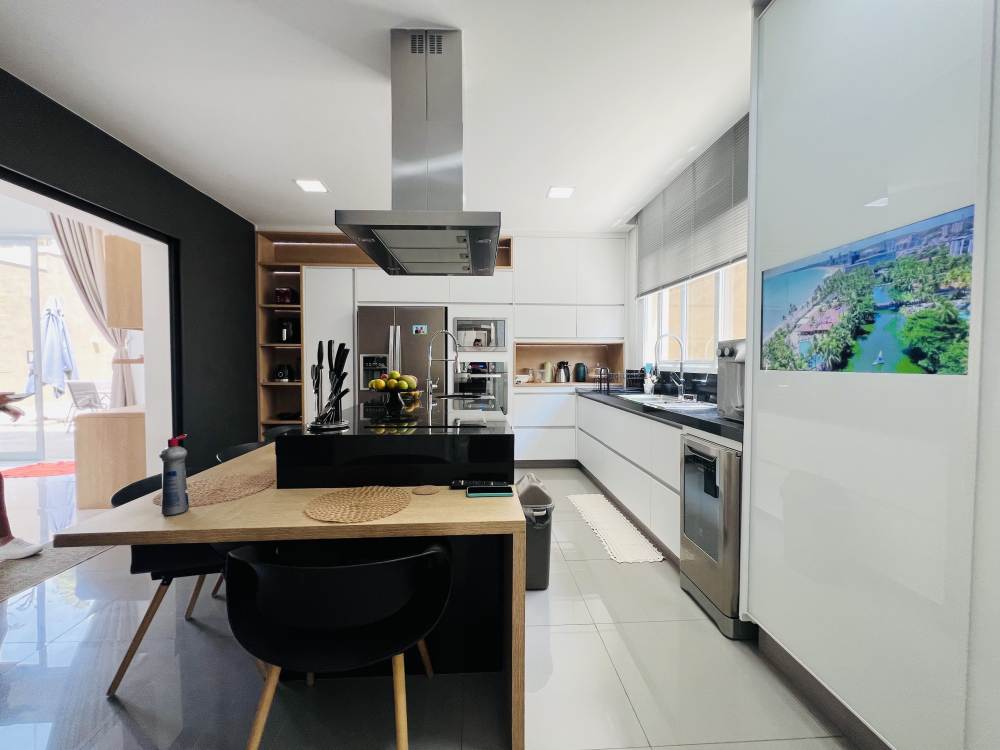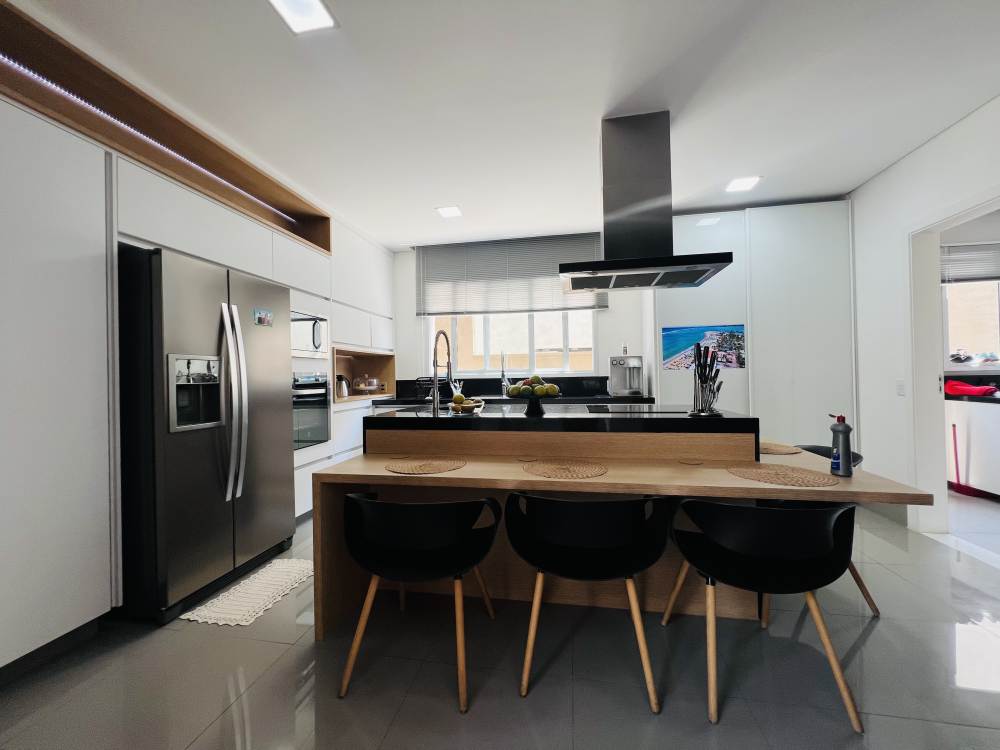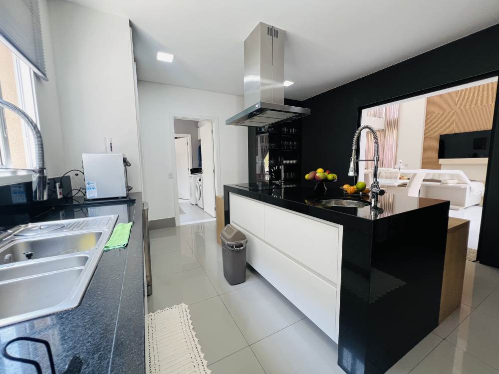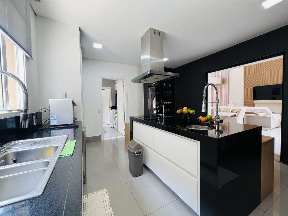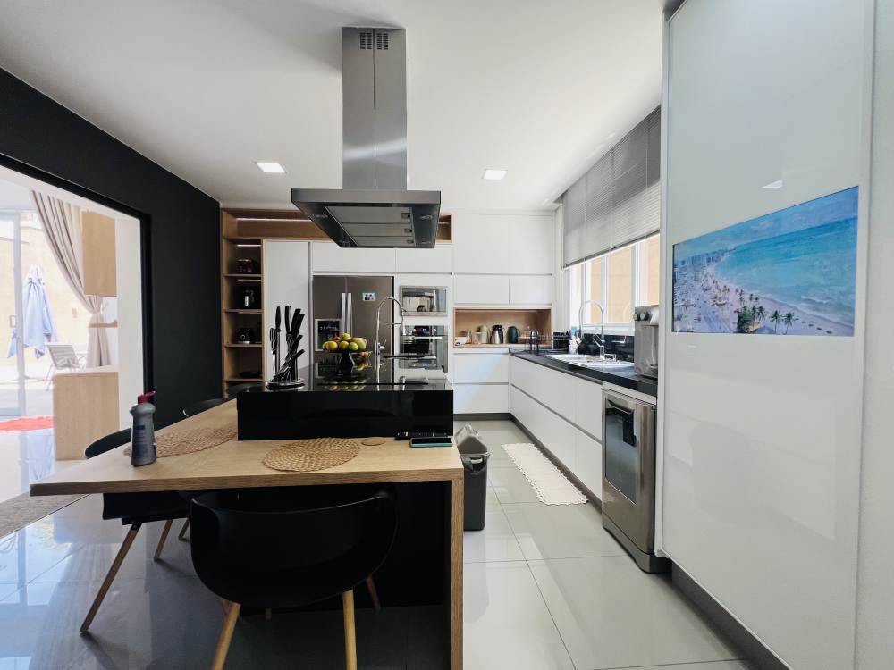 Cozinha moderna planejada com ilha, dependência de empregado