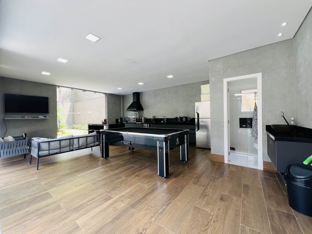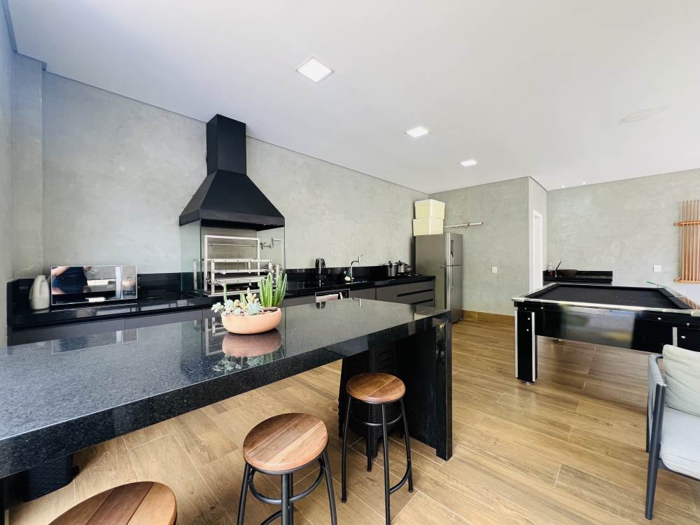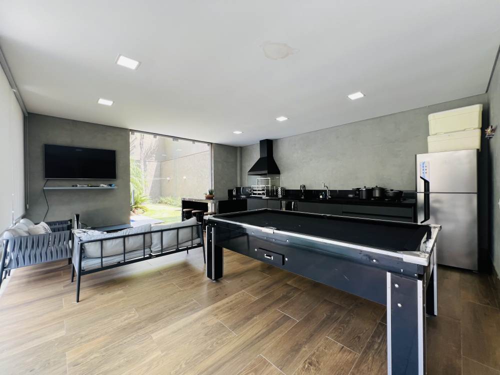Ao fundo possui uma área verde integrada com a área de lazer, sala de jogos e, piscina aquecida,