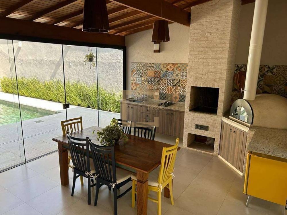 Possui 3 suítes, lazer completo com espaço gourmet, piscina com pedra Hijau natural aquecida e fogo de chão no jardim.