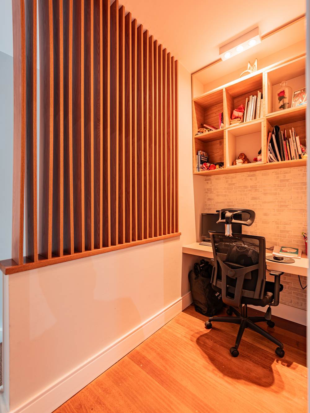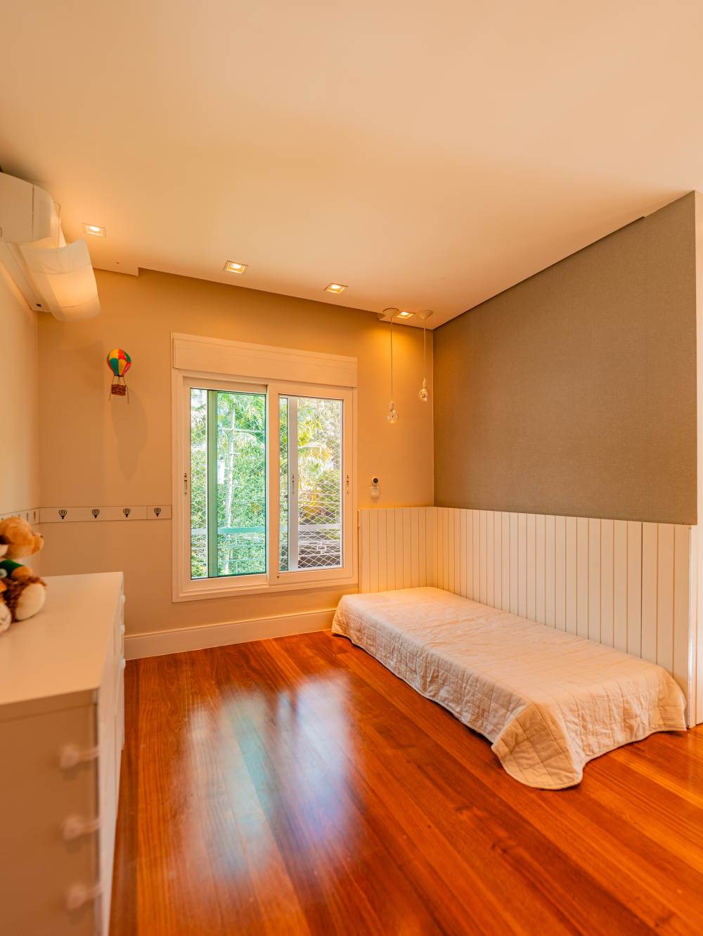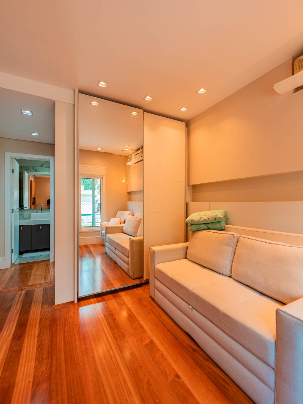 No pavimento superior, um belíssimo assoalho de madeira jatobá reveste os