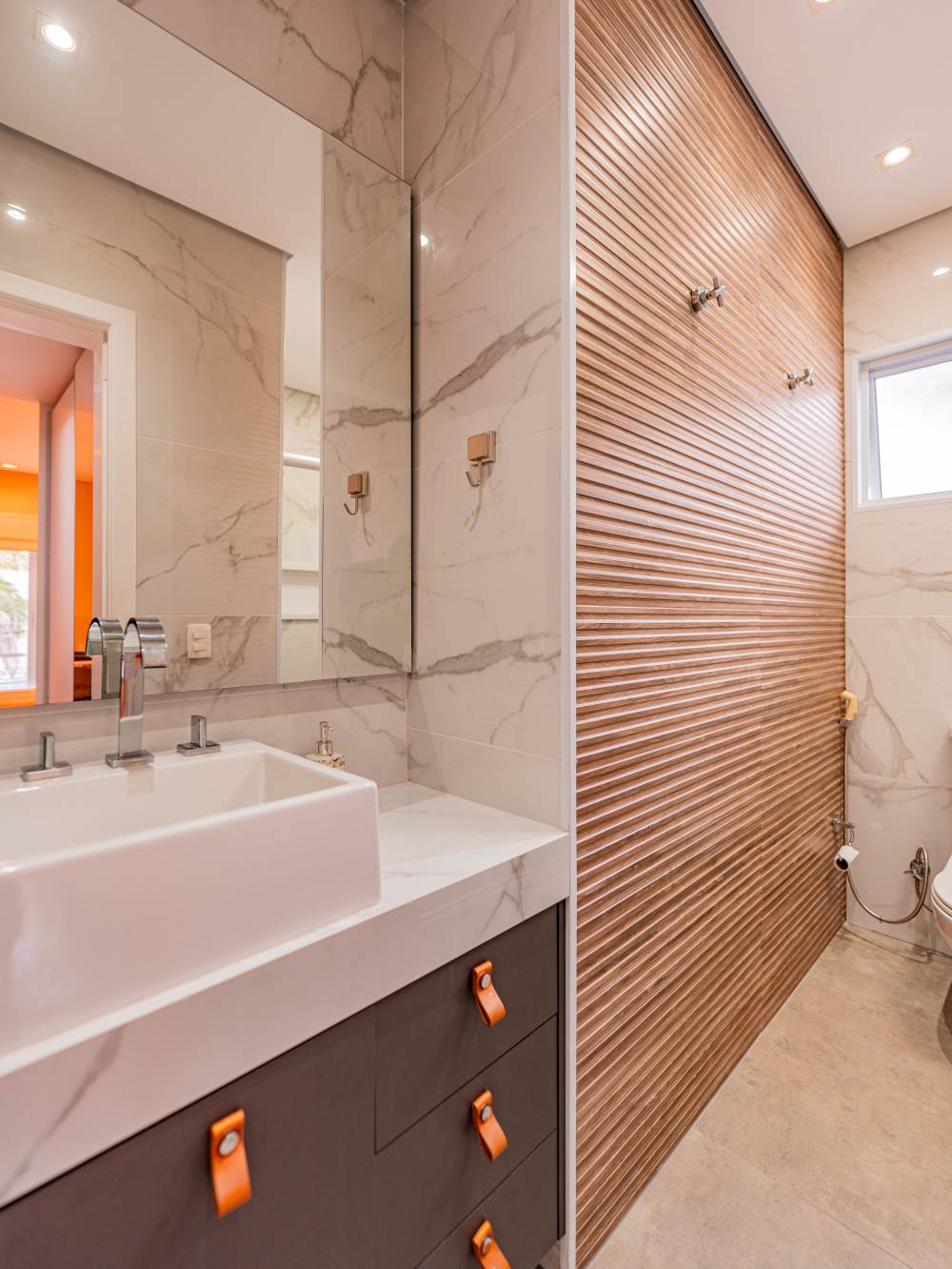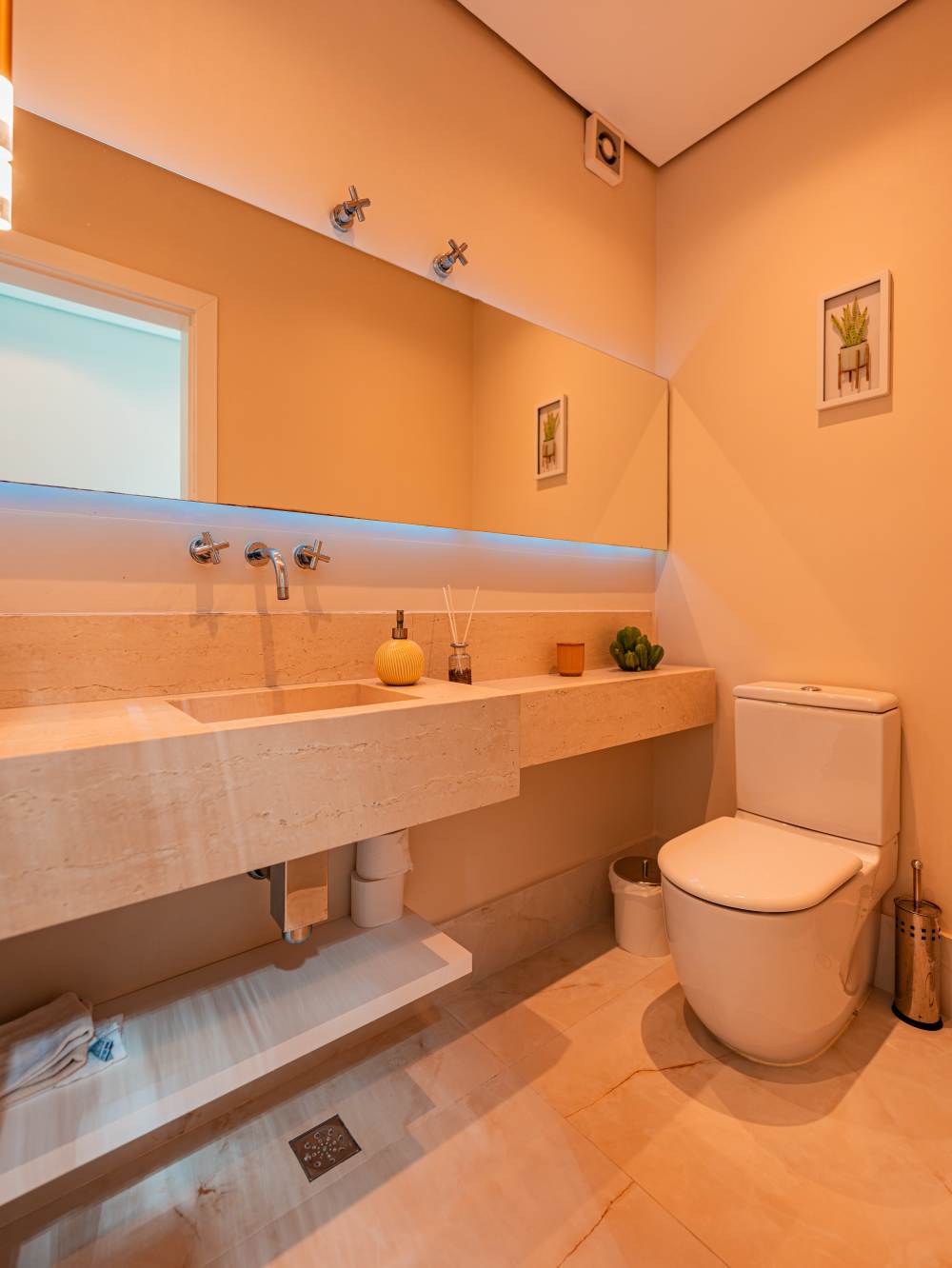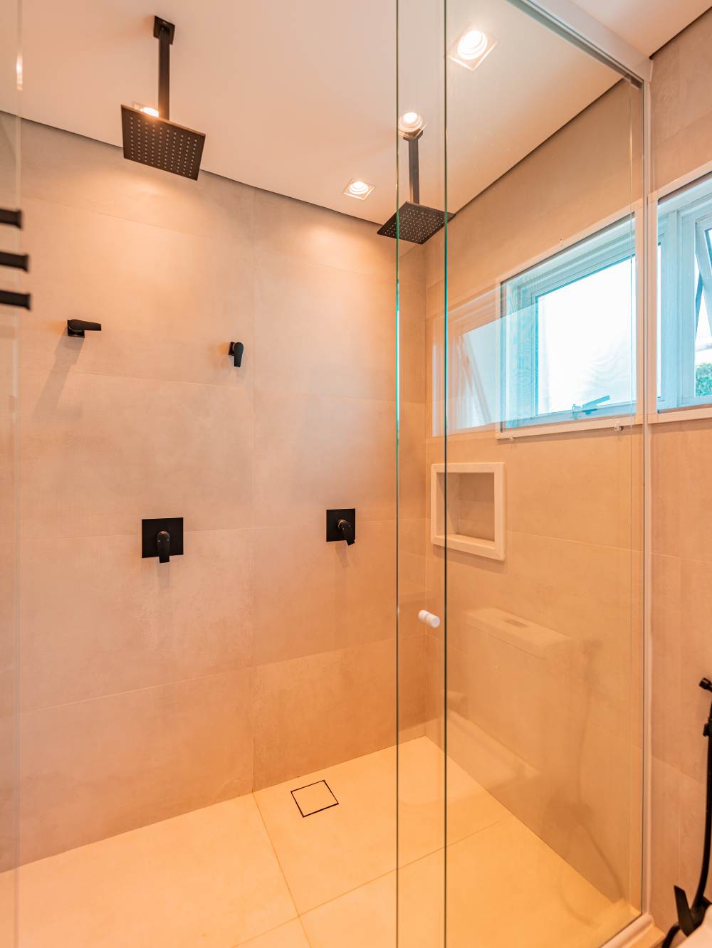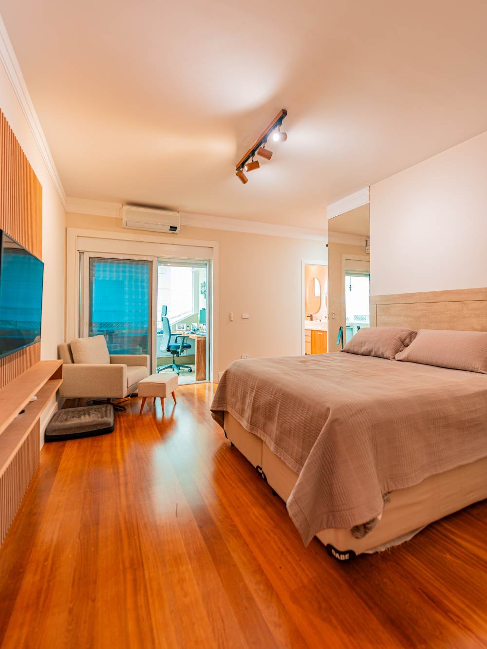 verdadeiro refúgio, com closet, pia dupla e chuveiro duplo em seu banheiro, além de um
