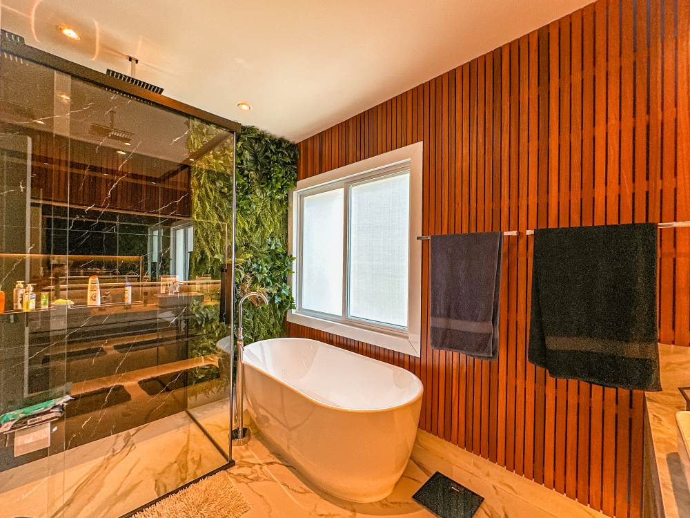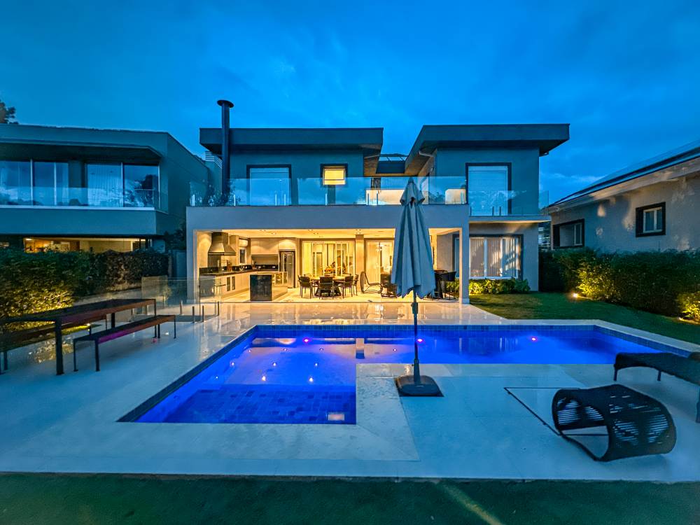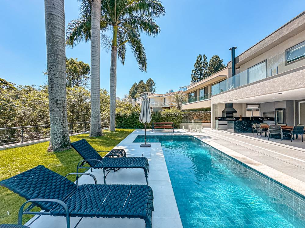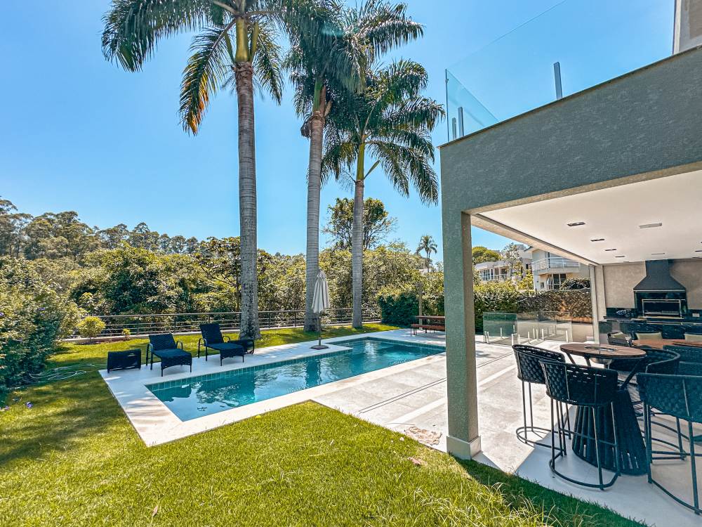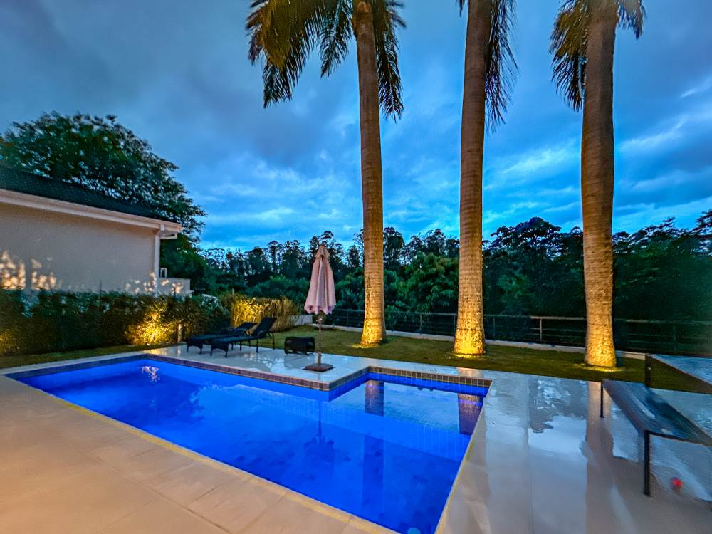 Piscina aquecida e iluminação em Led, fundo pra reserva ambiental,