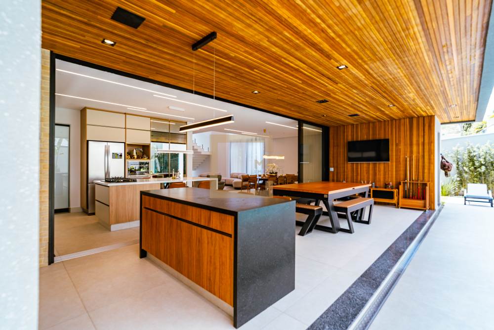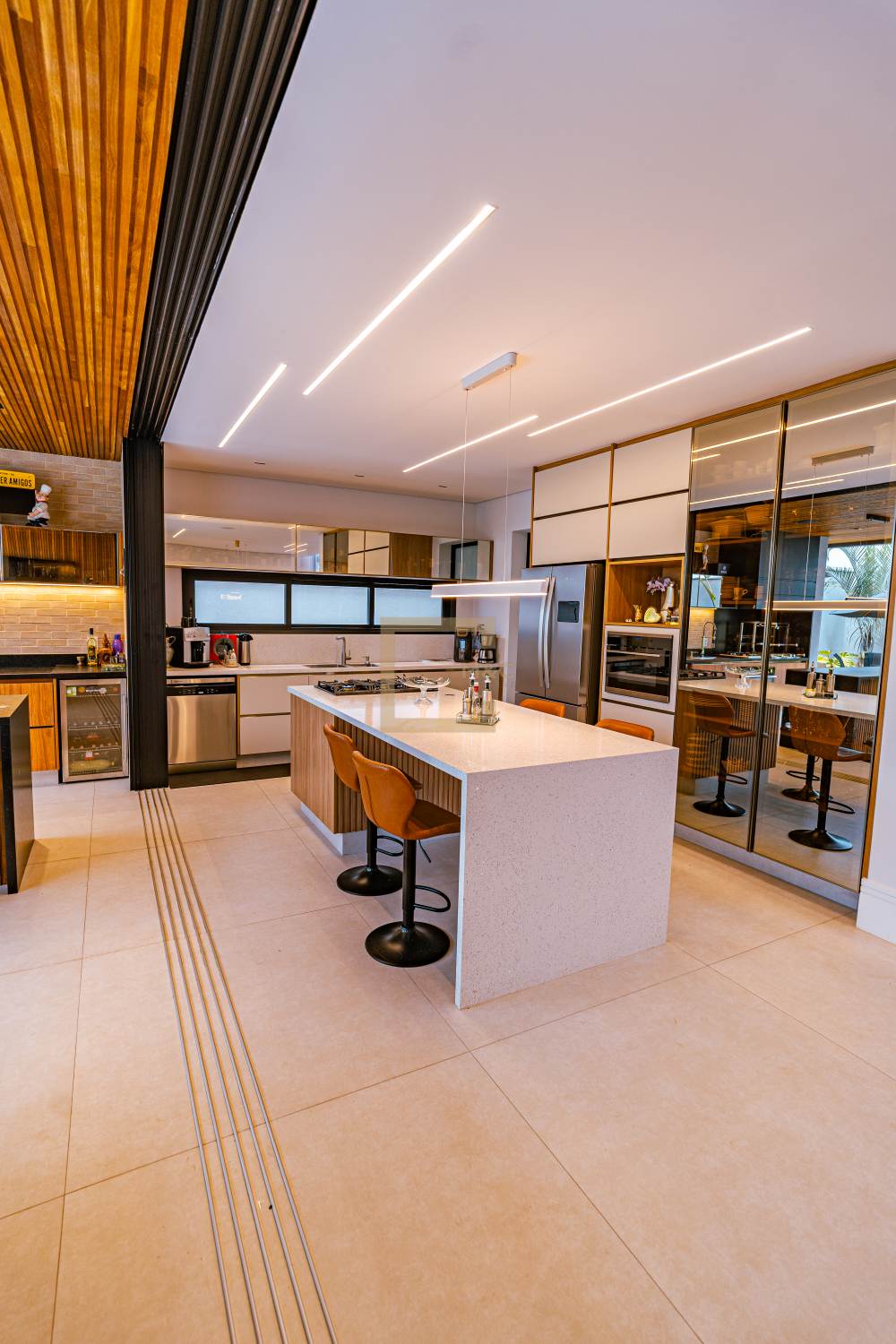 Área Gourmet c Fogão e forno 3x1 micro-ondas, forno e Grill marca Cuisinart e Cervejeira Eletronet,