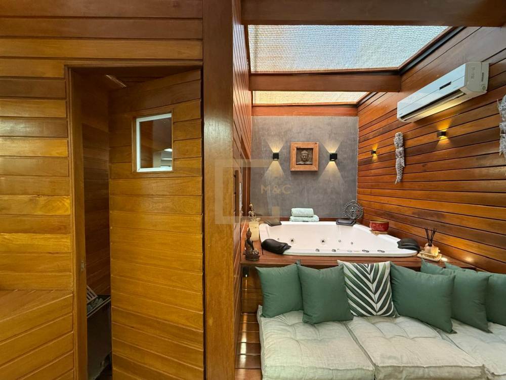 O deck de madeira, e o lindo paisagismo que garante a privacidade aos ambientes, integrado a área gourmet com forno de pizza, churrasqueira.