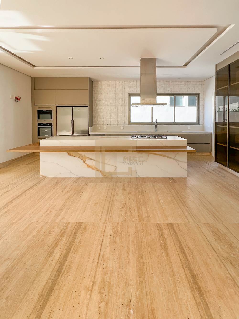 Espaço Gourmet completo Florense com churrasqueira a gás, Florense Evol, bar refrigerado Art Grill bancadas em Preto Absoluto e revestimento Oxydem Castellato, Home Theater, Piscina com revestimento em Pedra Hijau aquecida com Spa, Prainha e deck Castelatto, Edícula completa em Mármore Travertino com Sauna a vapor, Adega climatizada - 380 rótulos.
