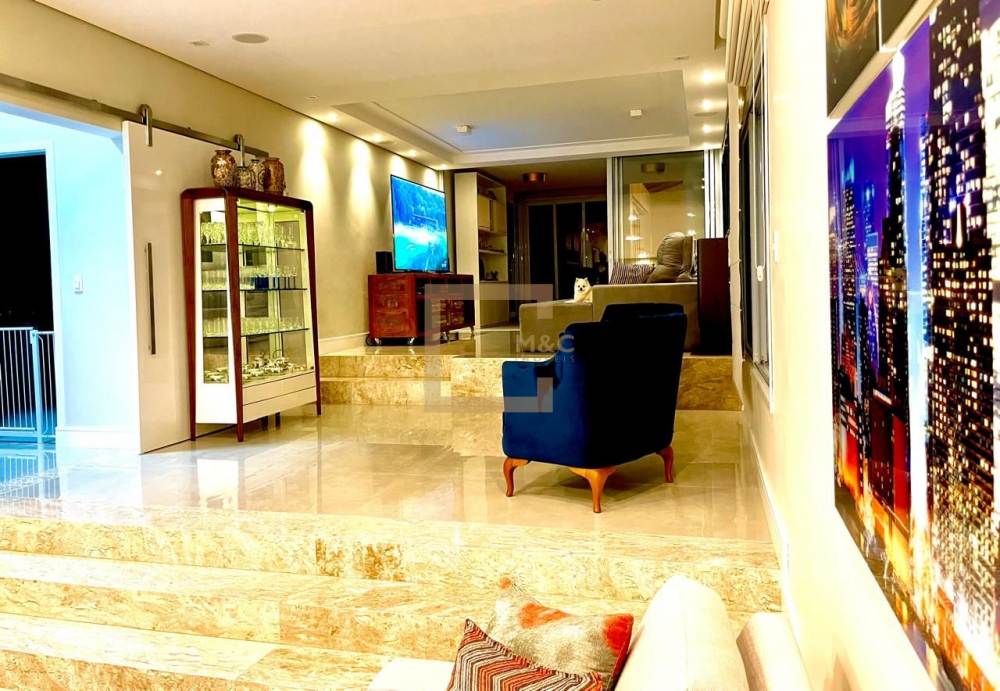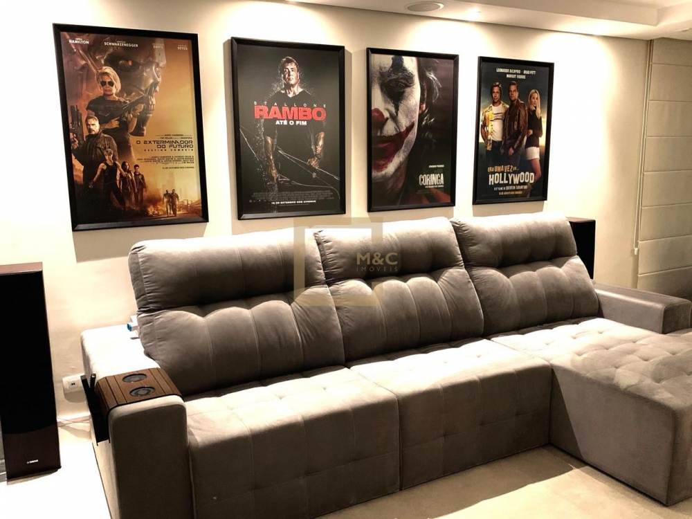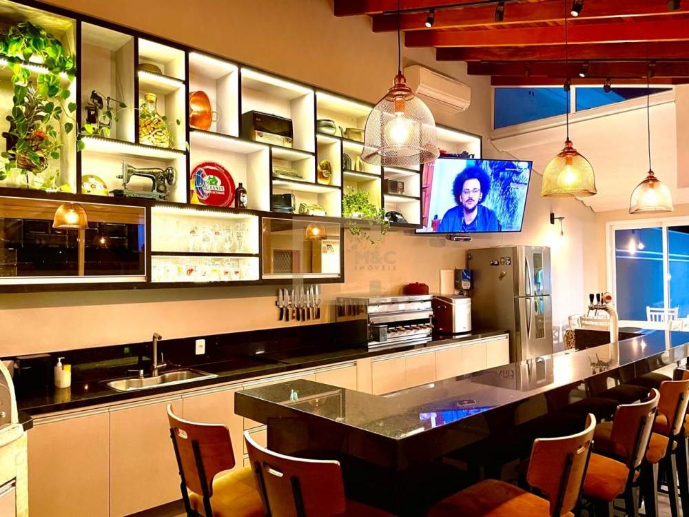 Lavabo, área de serviço, despensa e seis vagas de garagem.