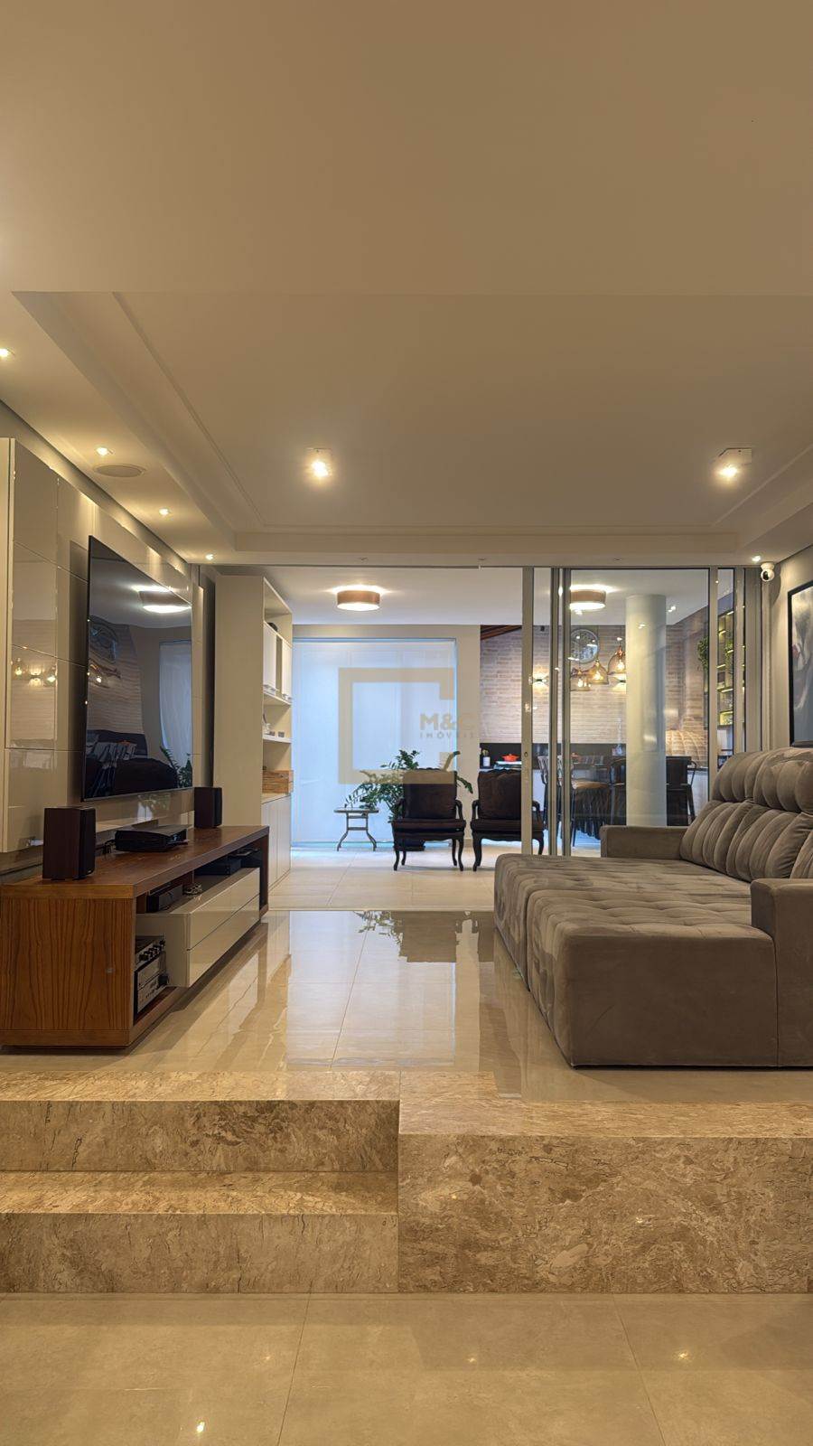 Sala espaçosa para três ambientes.