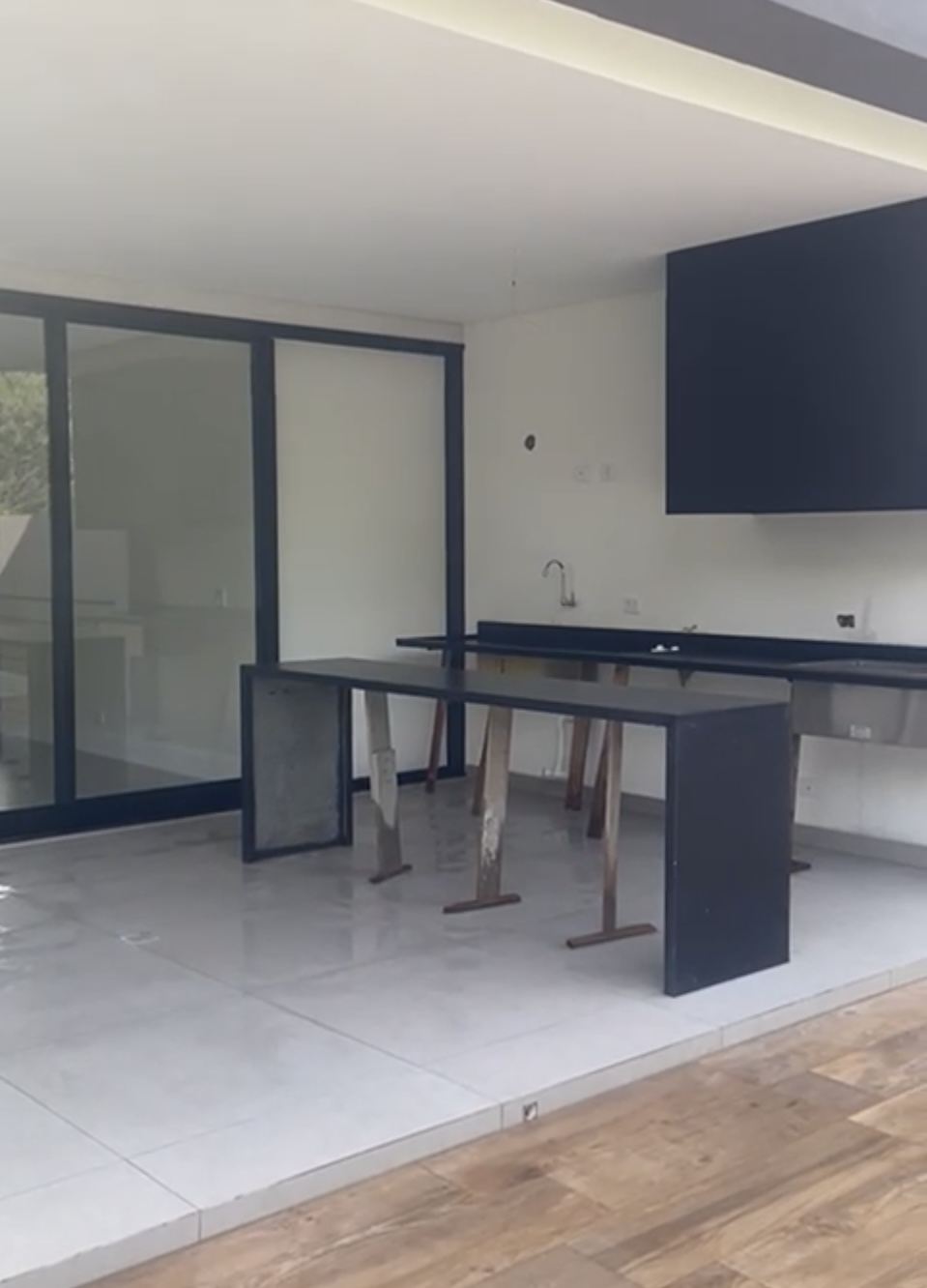Cozinha generosa com bancadas em granito São Gabriel com ilha e despensa voltada para a sala de jantar e área gourmet completa.