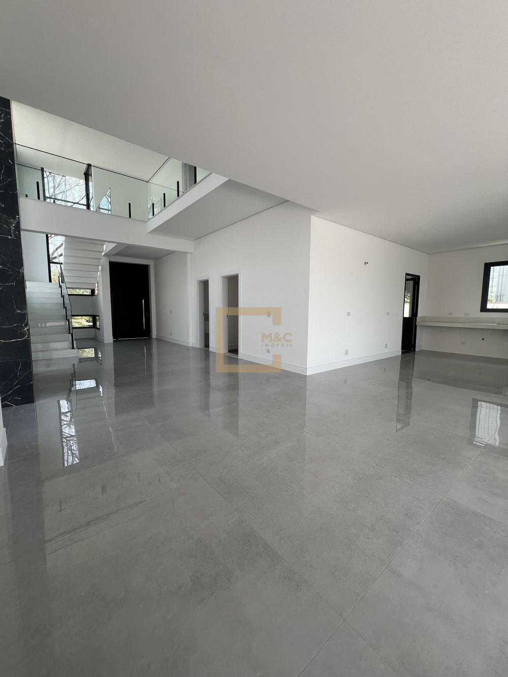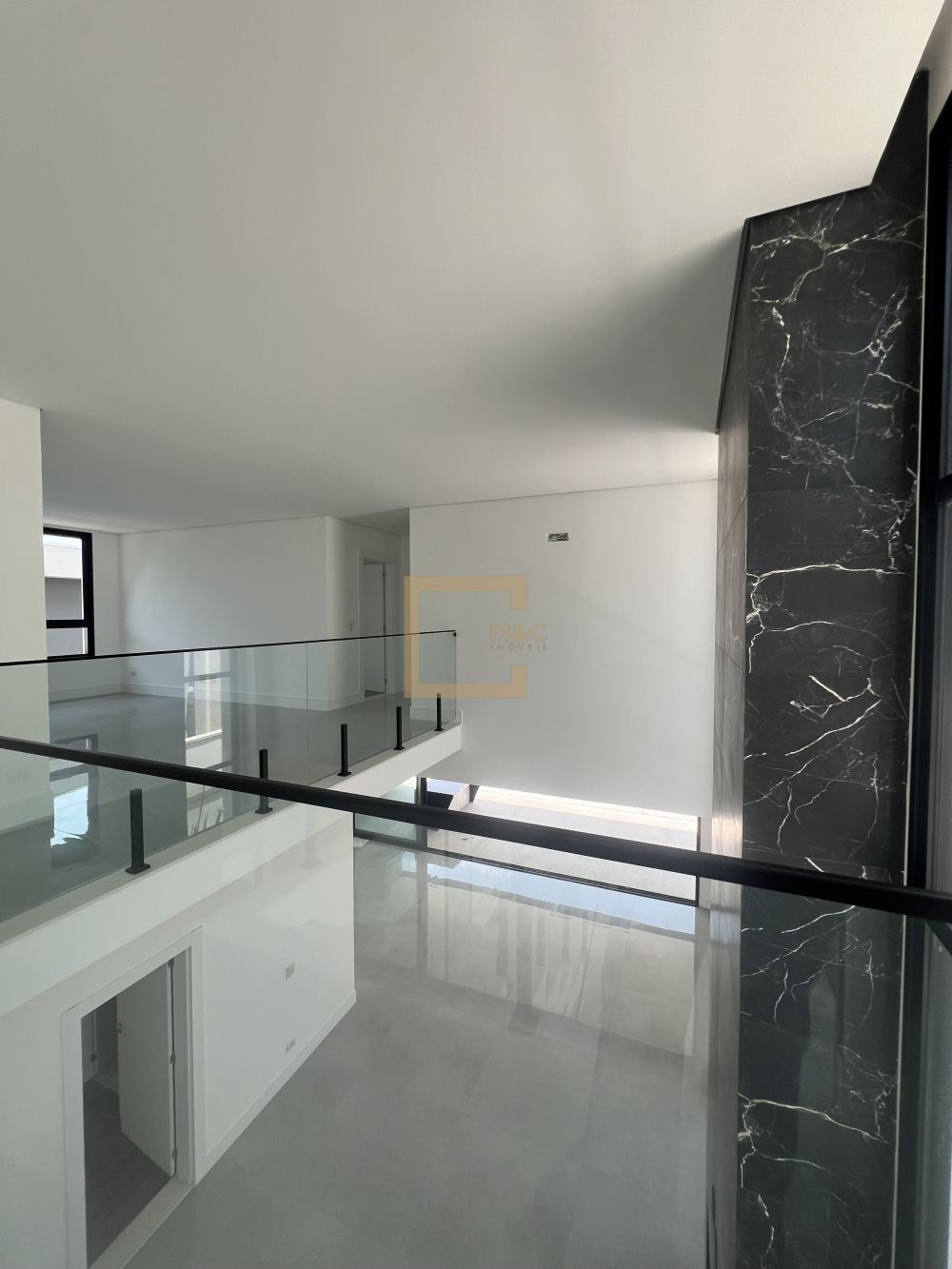 O pé direito duplo e as esquadrias automatizadas enriquecem o design. A casa está preparada para energia fotovoltaica e possui sistema de energia solar, alinhando luxo com sustentabilidade.