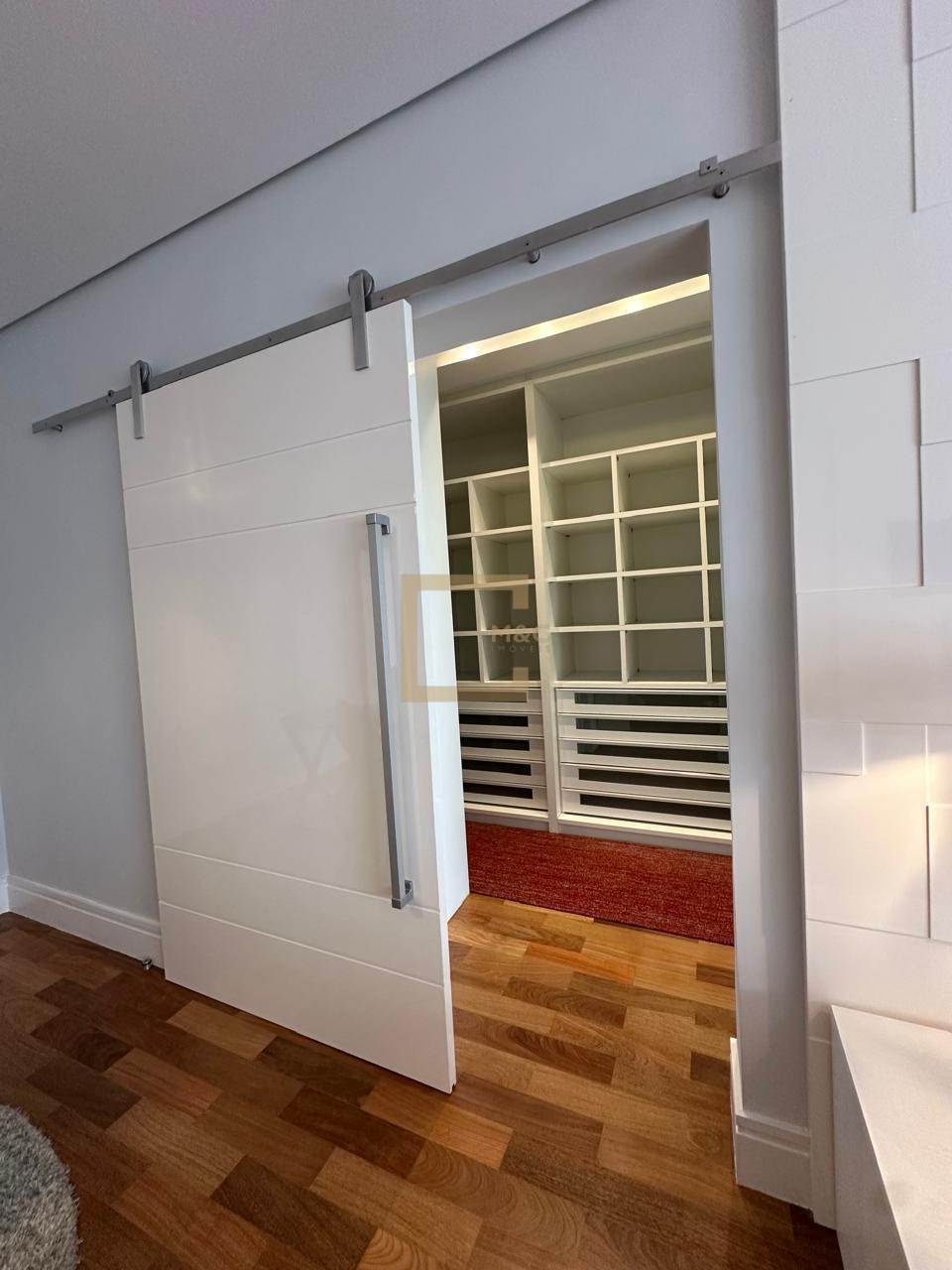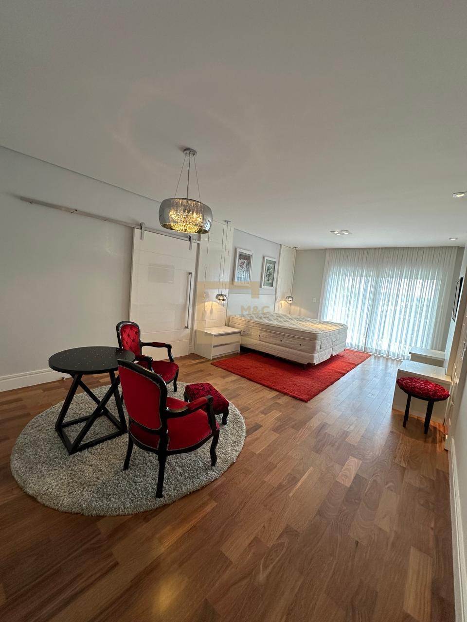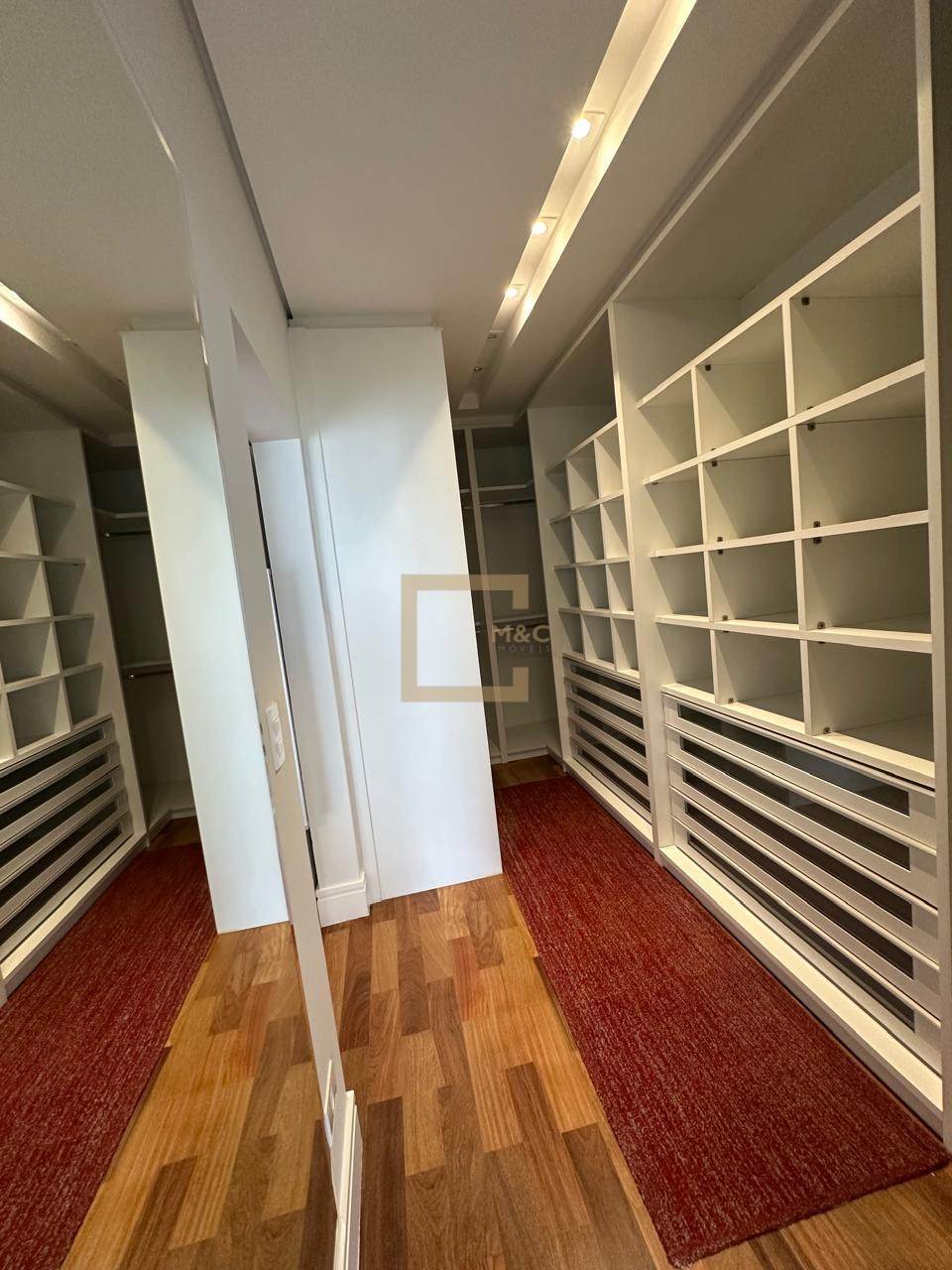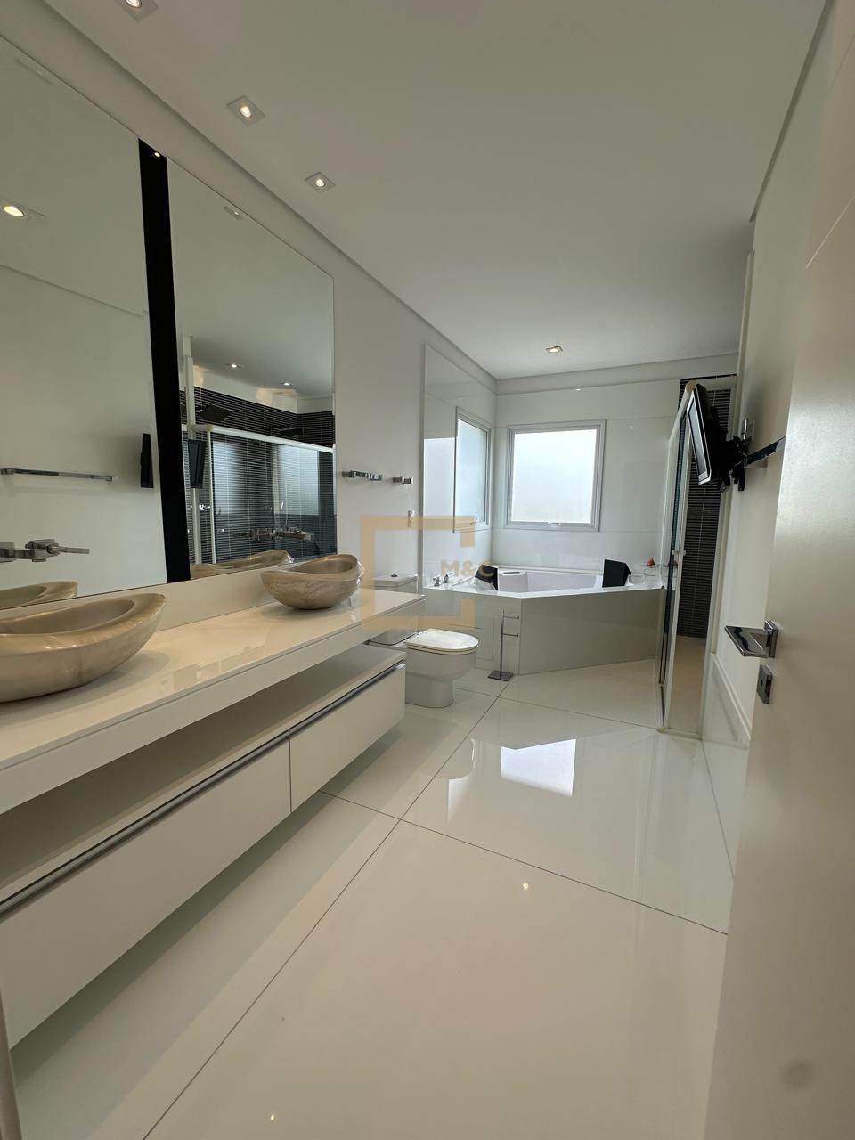 4 suítes completas, todas com ar-condicionado, armários embutidos sob medida e camas box, a master com closet espaçoso e banheiro com banheira, bancada dupla e box com dois chuveiros