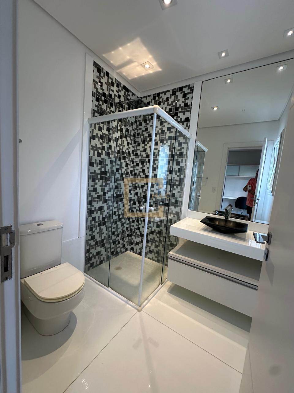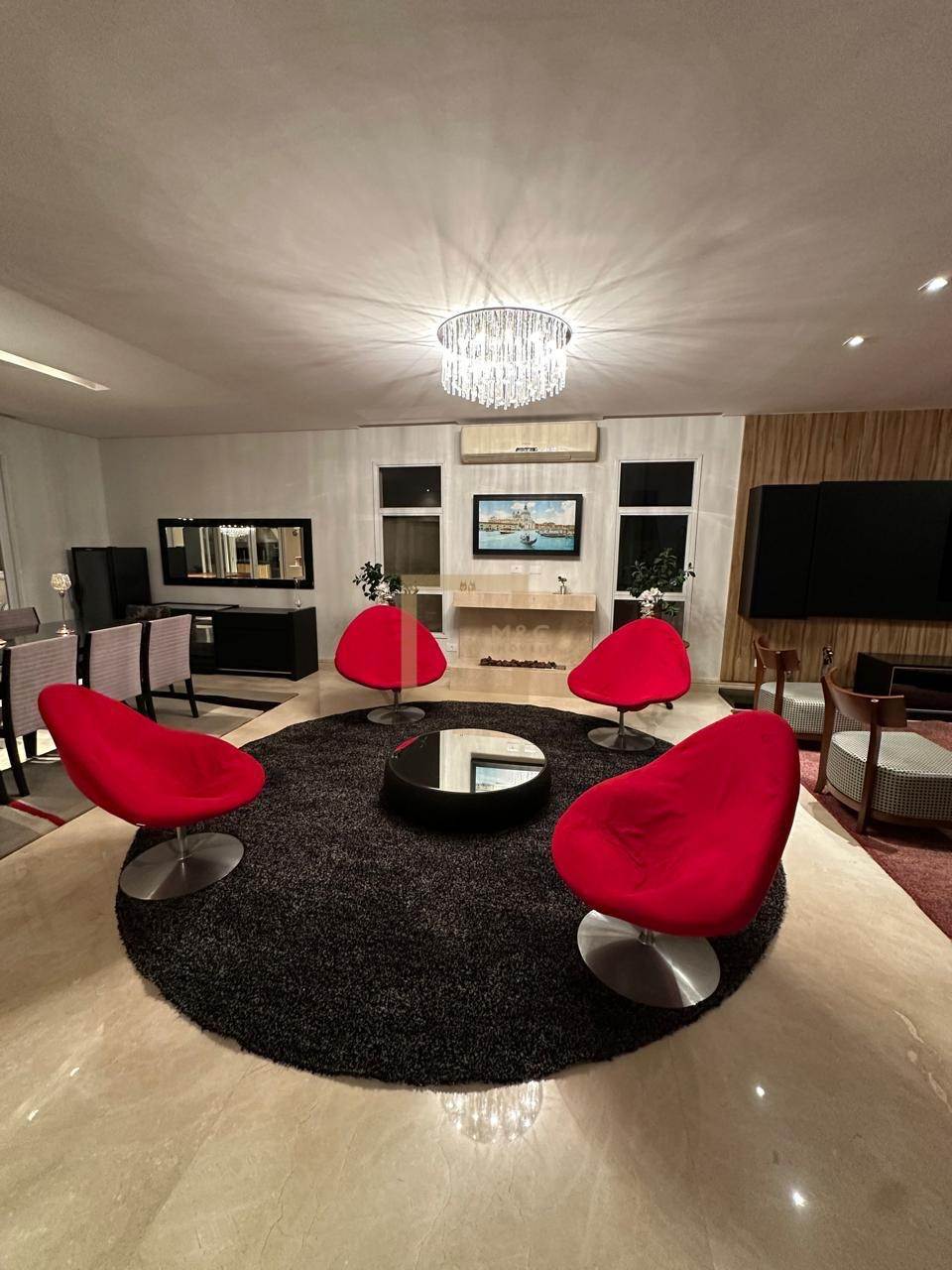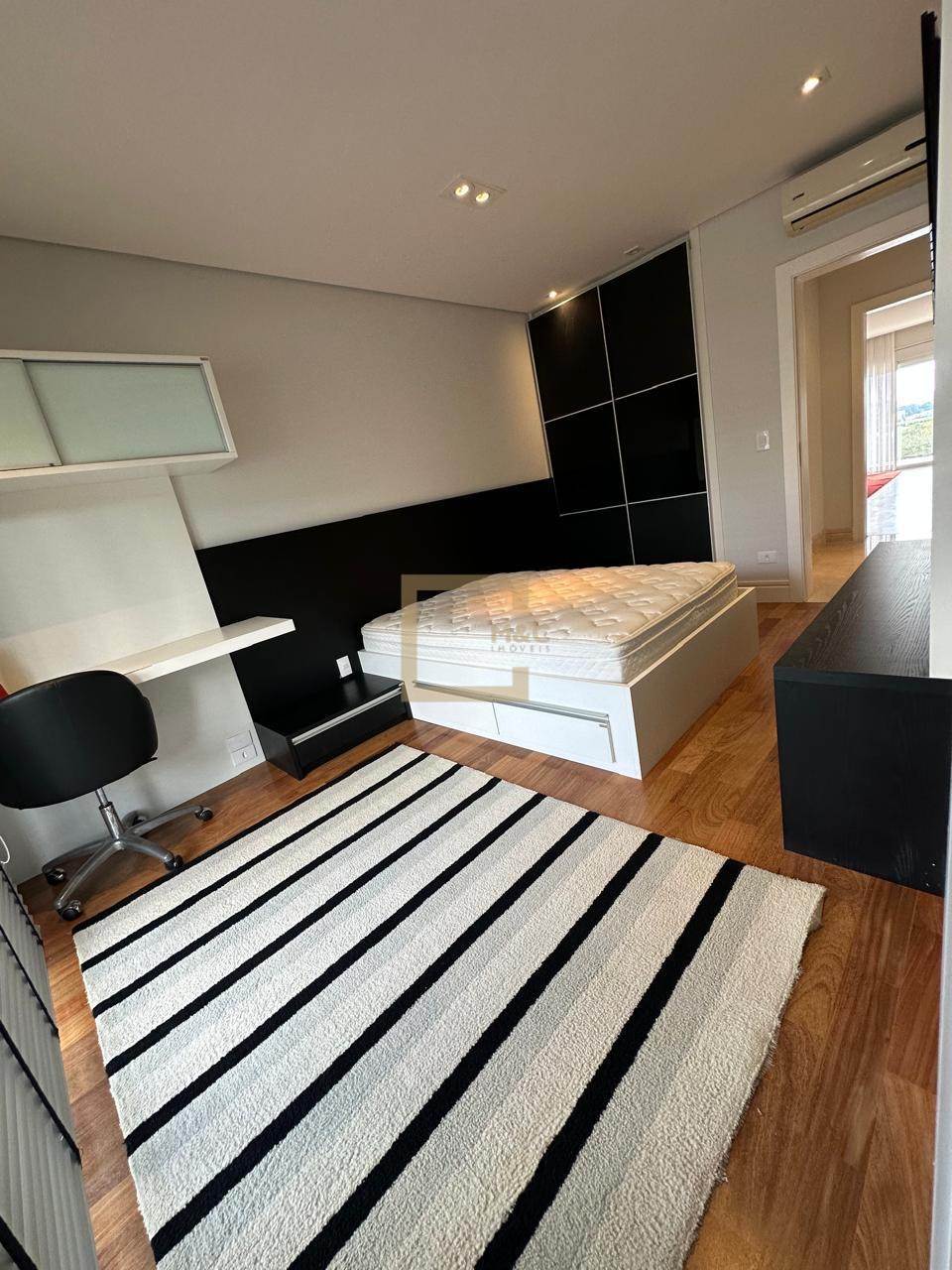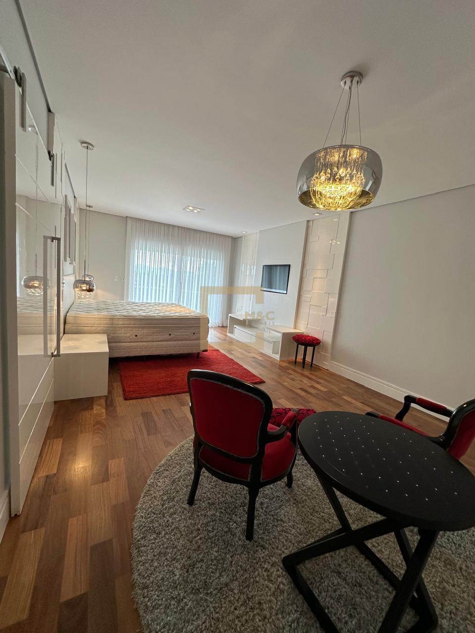 4 suítes completas, todas com ar-condicionado, armários embutidos sob medida e camas box, a master com closet espaçoso e banheiro com banheira, bancada dupla e box com dois chuveiros