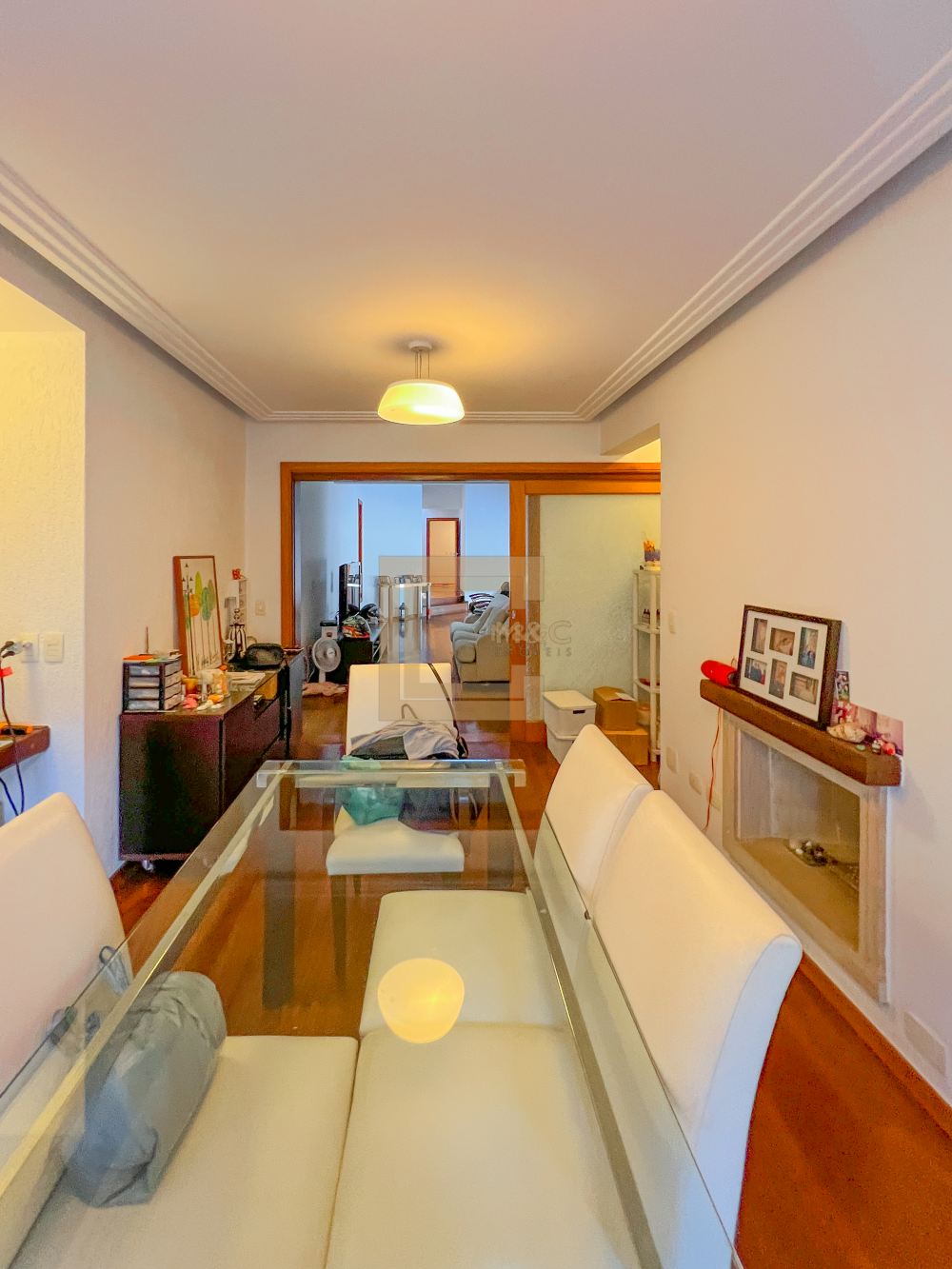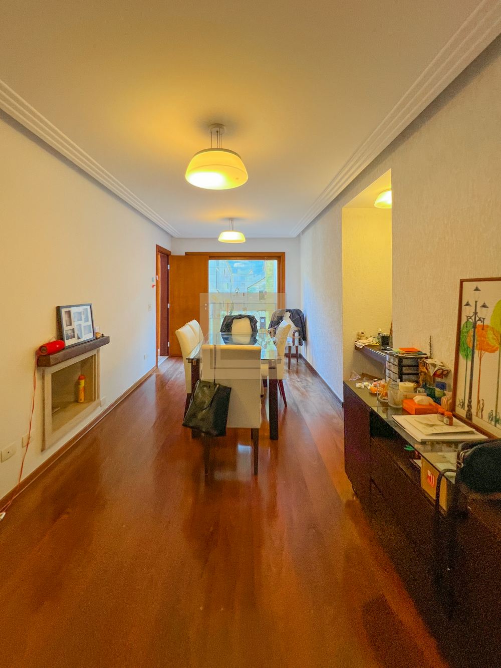 Sala de estar, jantar e lareira