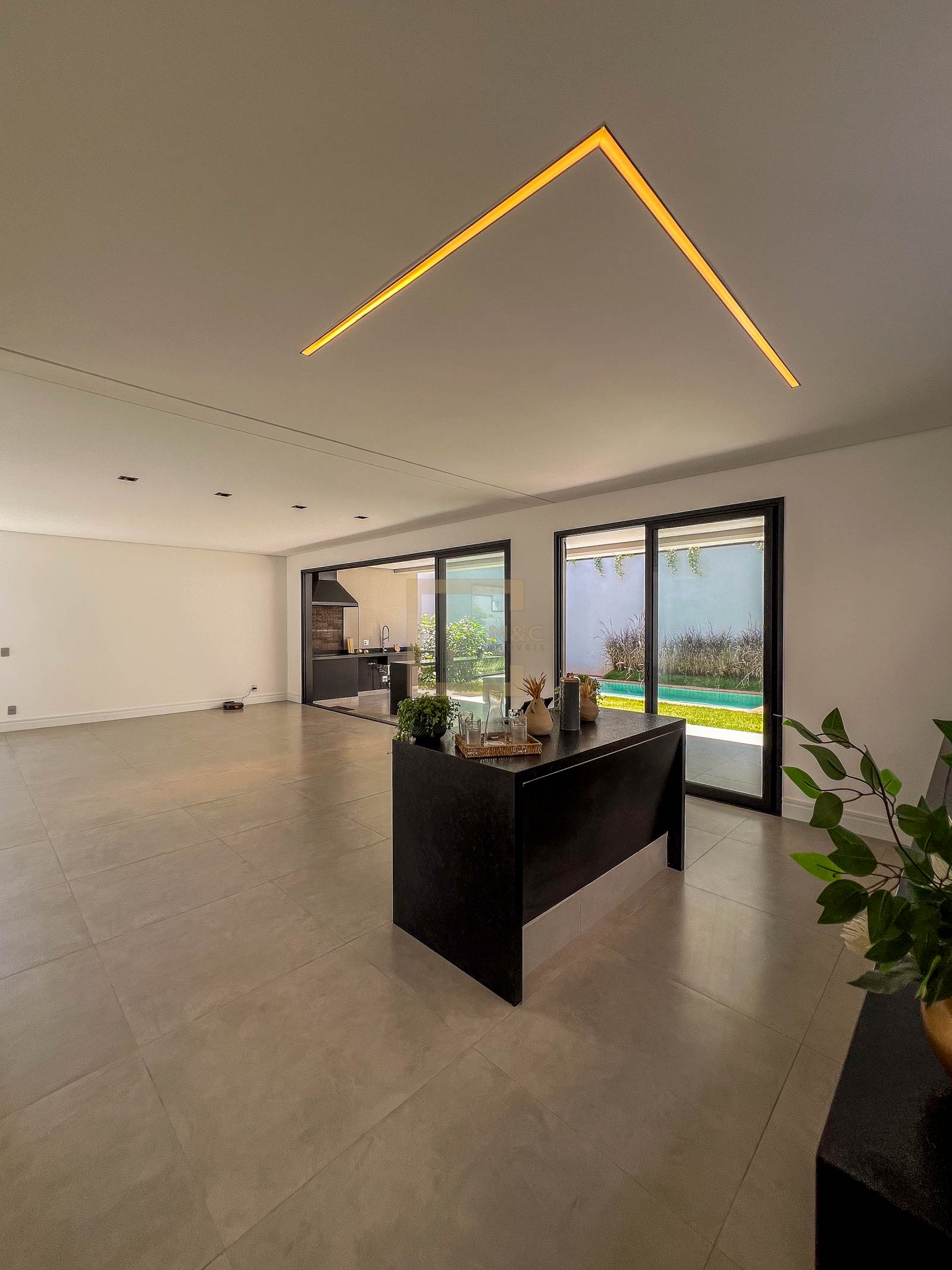 Living com pé direito alto, para 3 ambientes, sala de jantar integrada com a cozinha e amplo espaço gourmet.