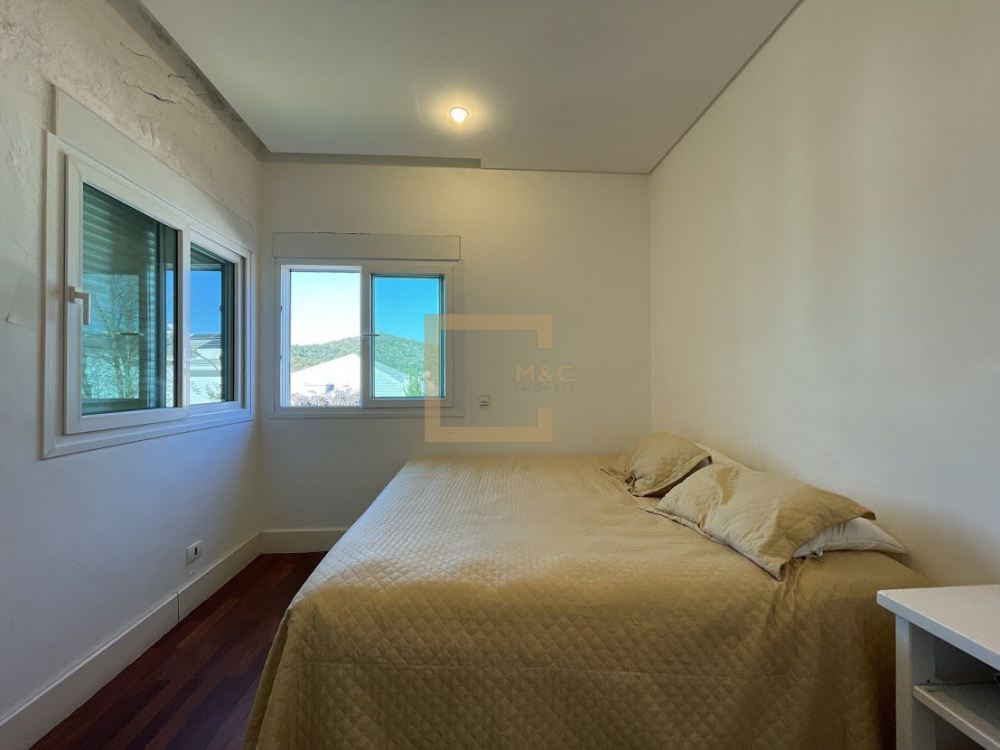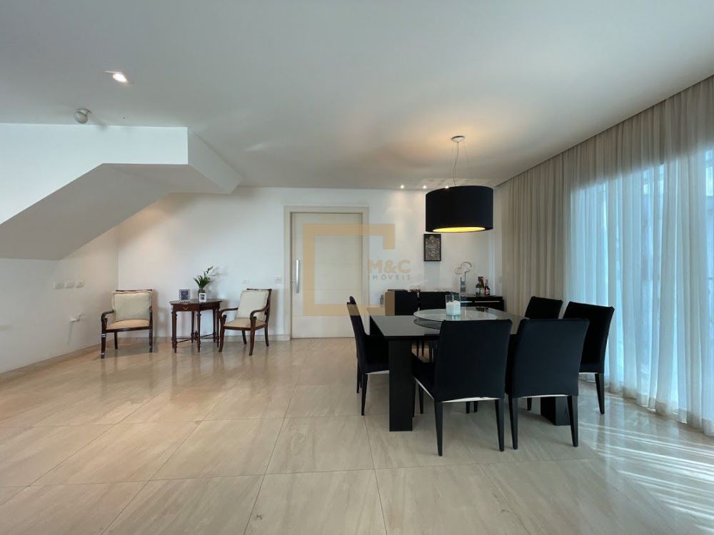 4 vagas de garagem, pisos em mármore e taco Cumaru, esquadrias de PVC Veka com tela mosqueteira e persianas elétricas, além de aquecedor solar e pressurizador para banho.