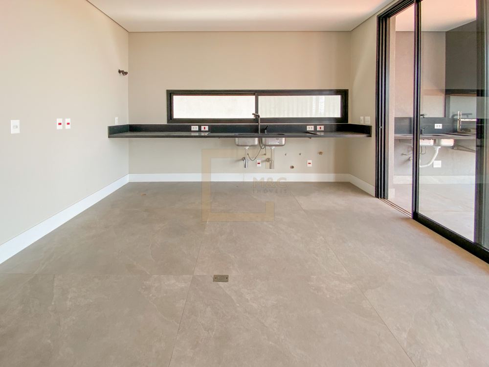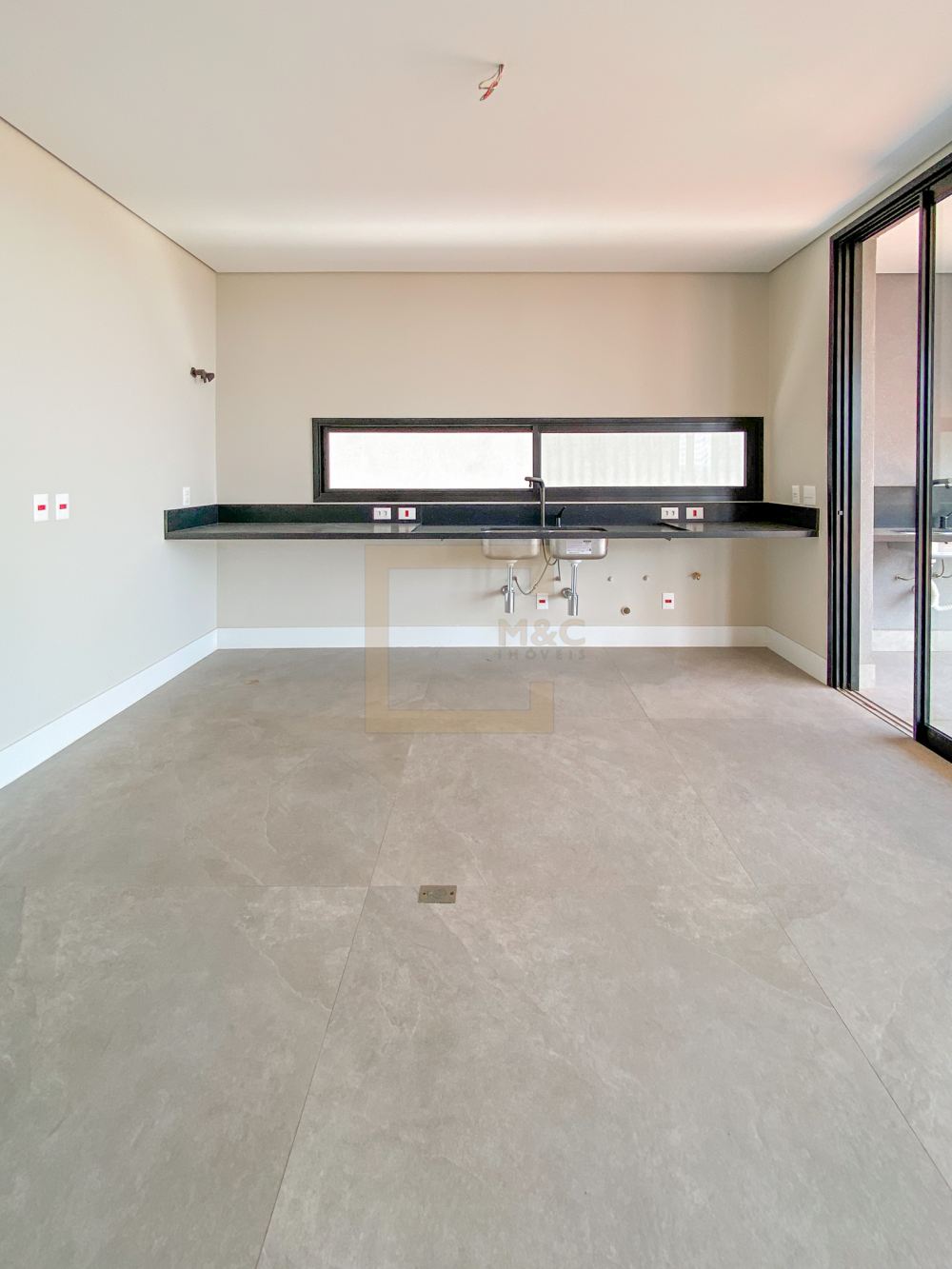 A cozinha gourmet é integrada à varanda, proporcionando um espaço ideal para entretenimento e culinária.