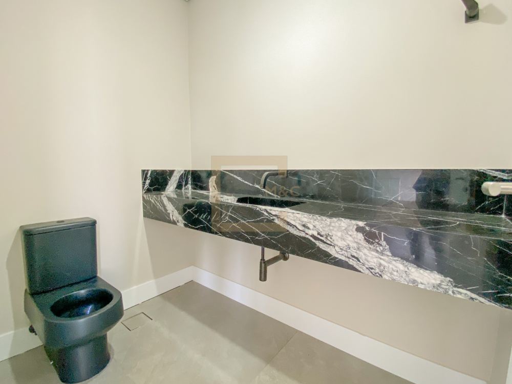 Lavabo, home theater, além de salas de estar e jantar integradas,