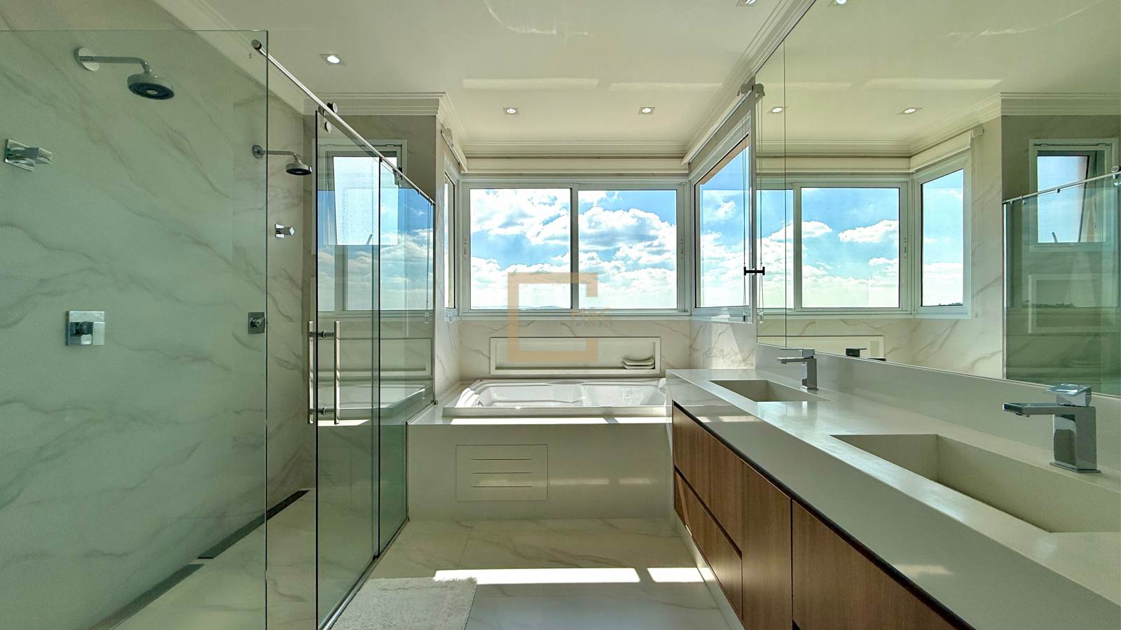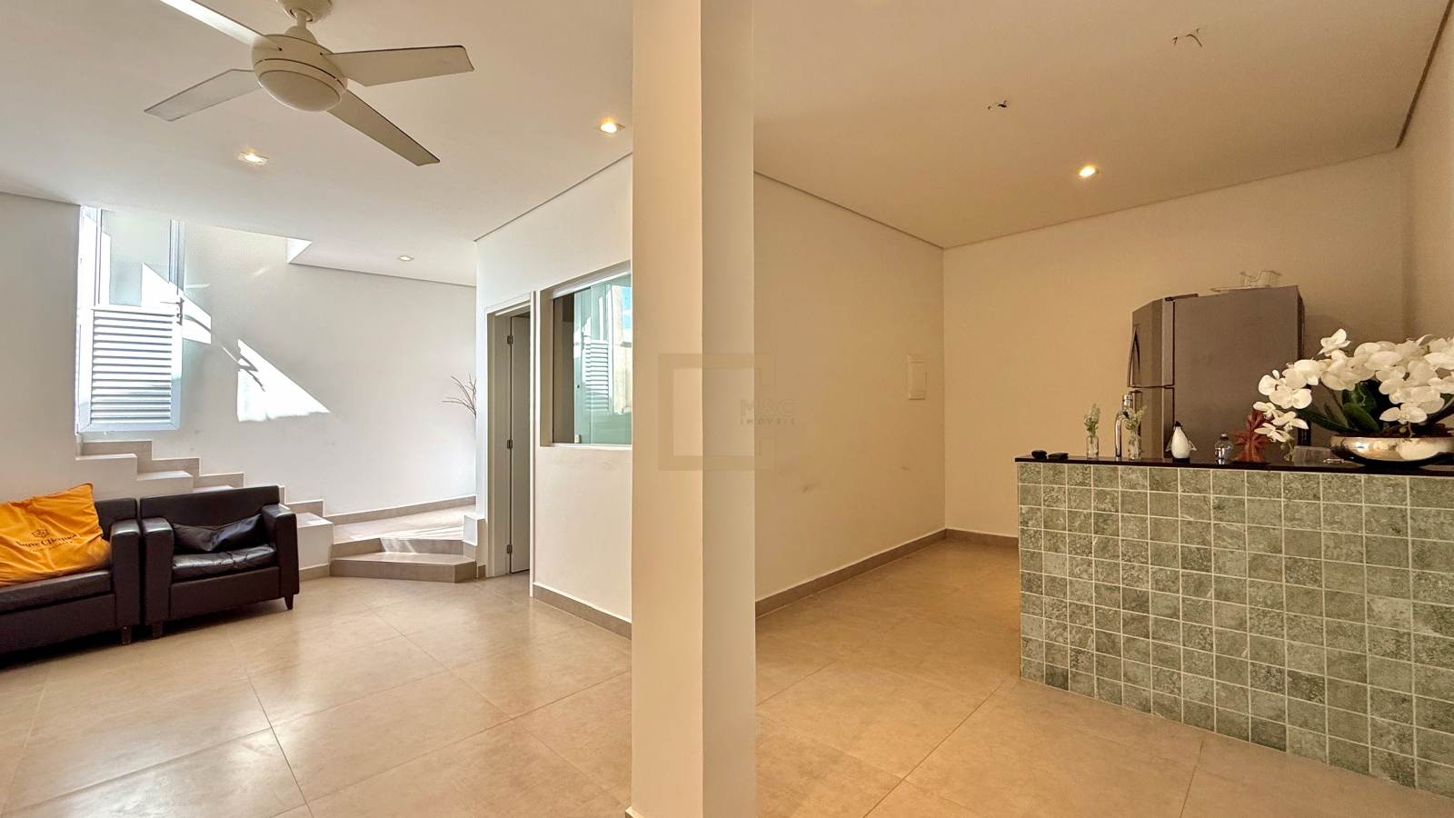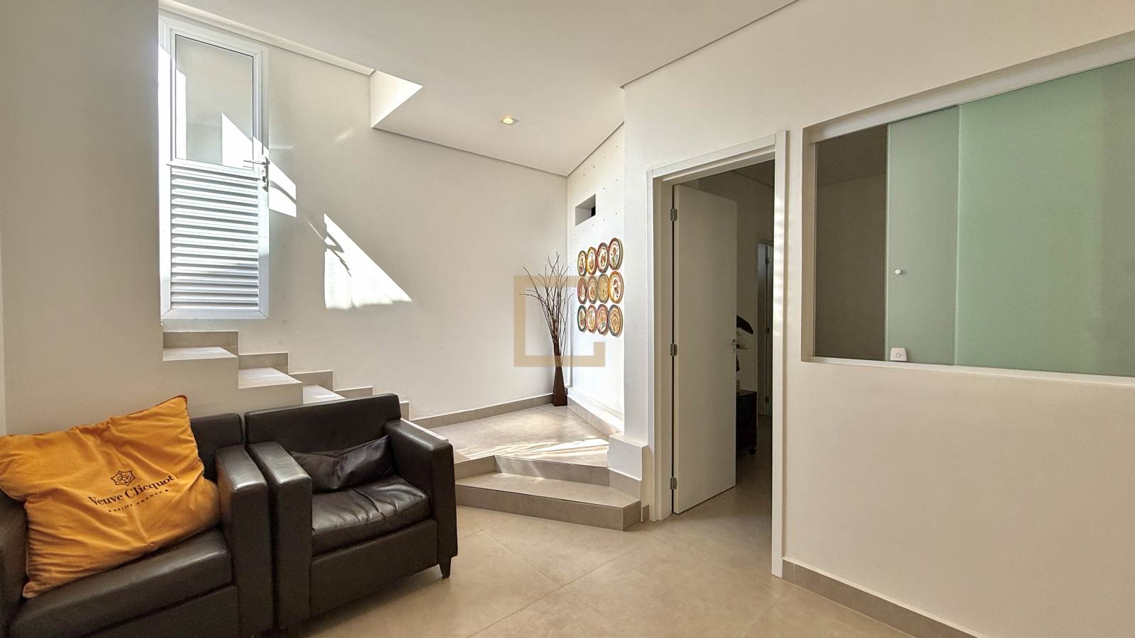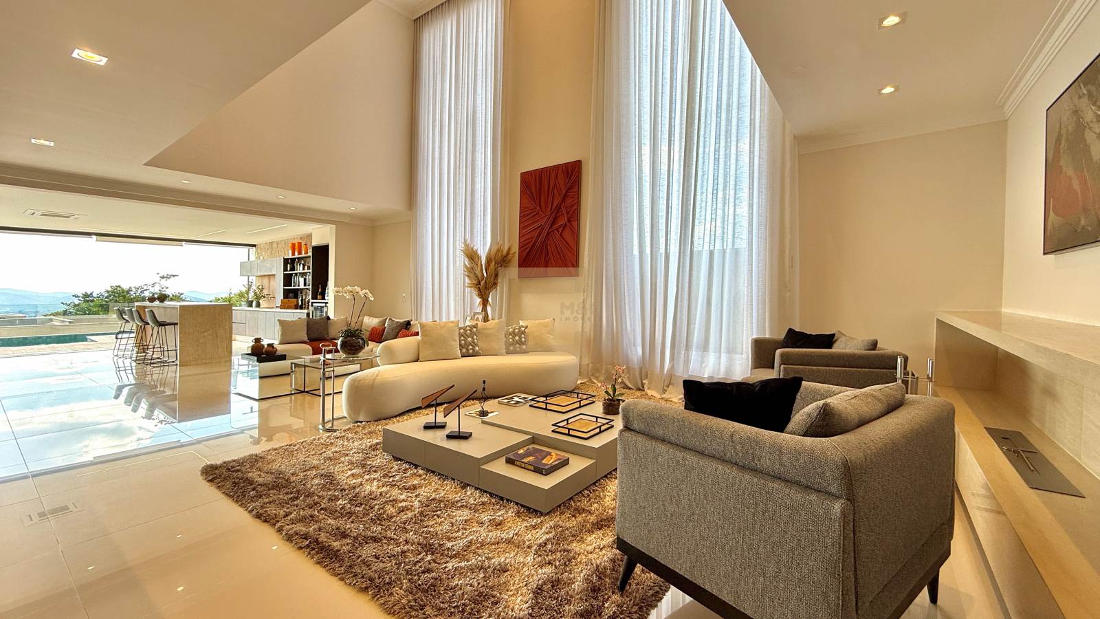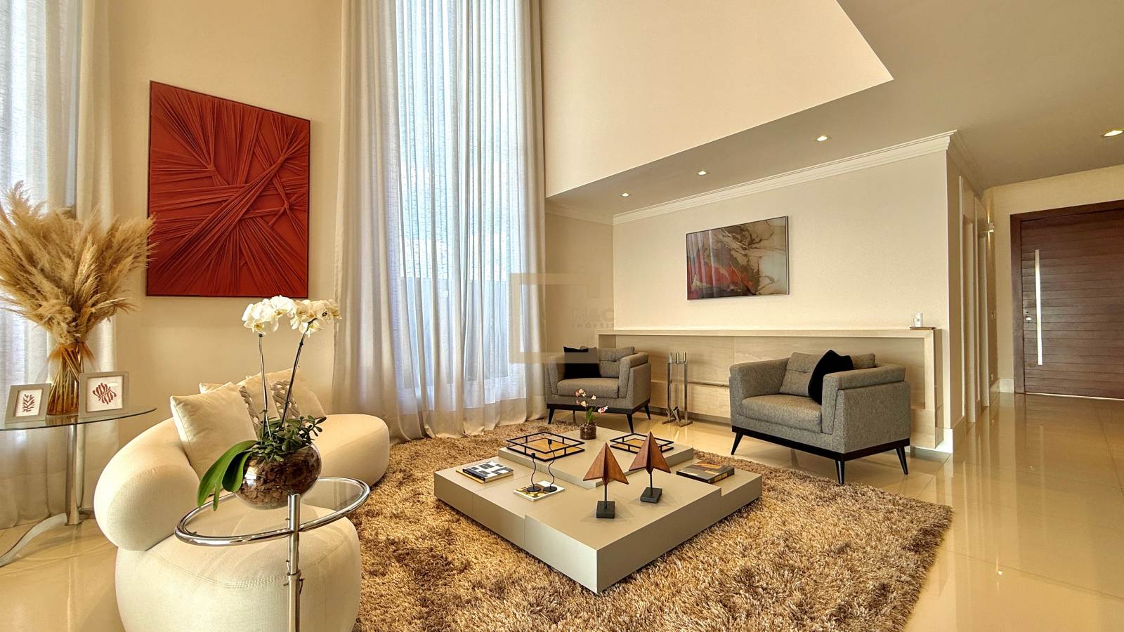 O pé direito duplo é imponente e dá um charme diferenciado ao imóvel.
