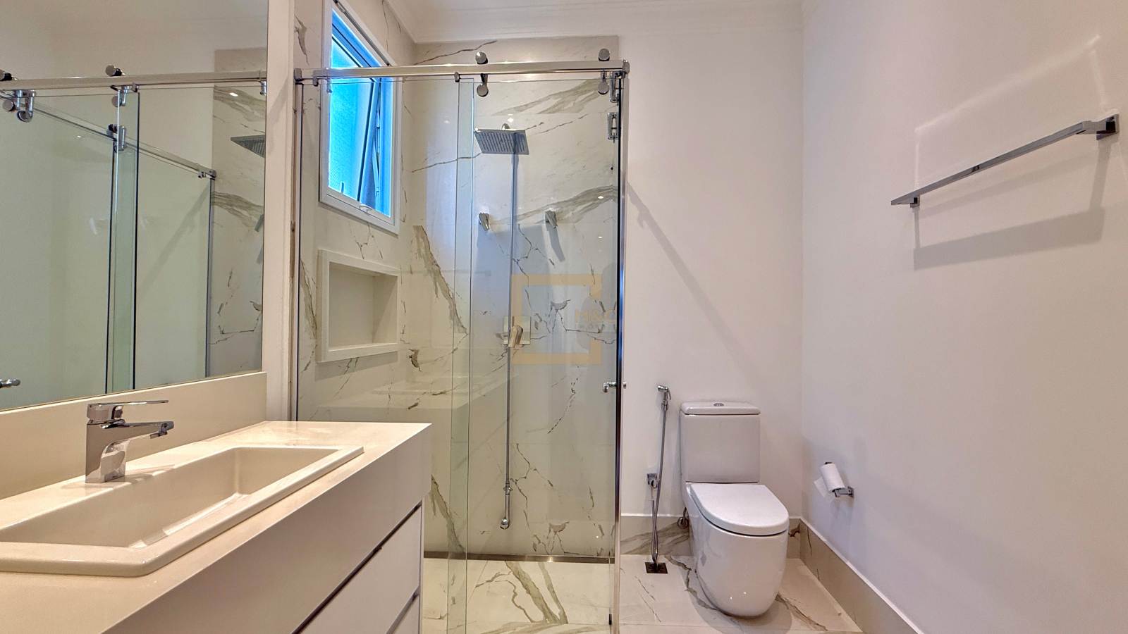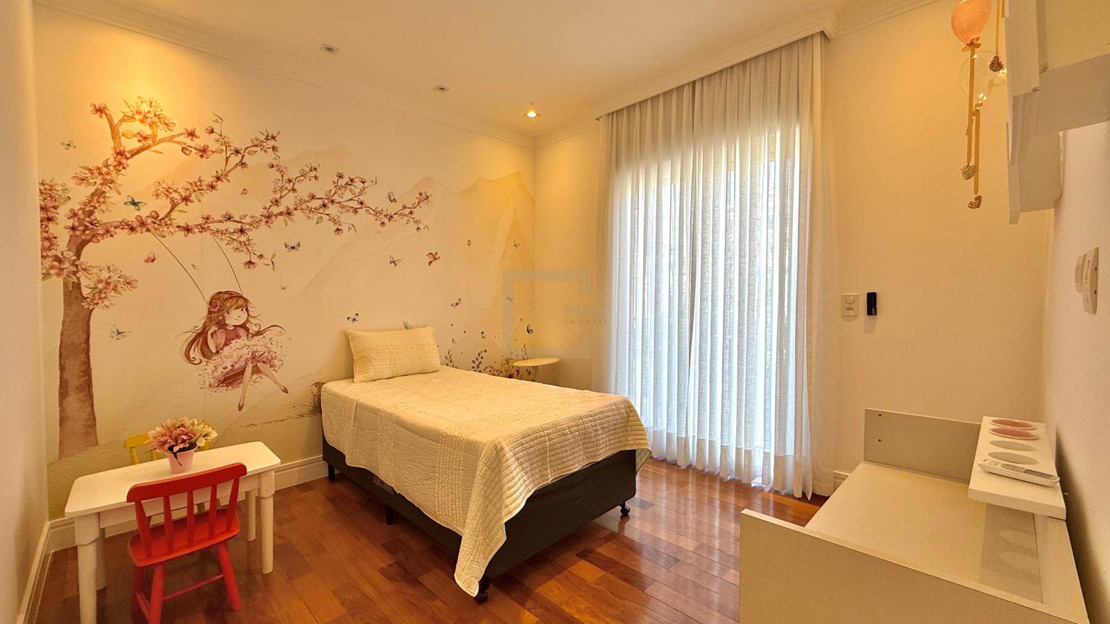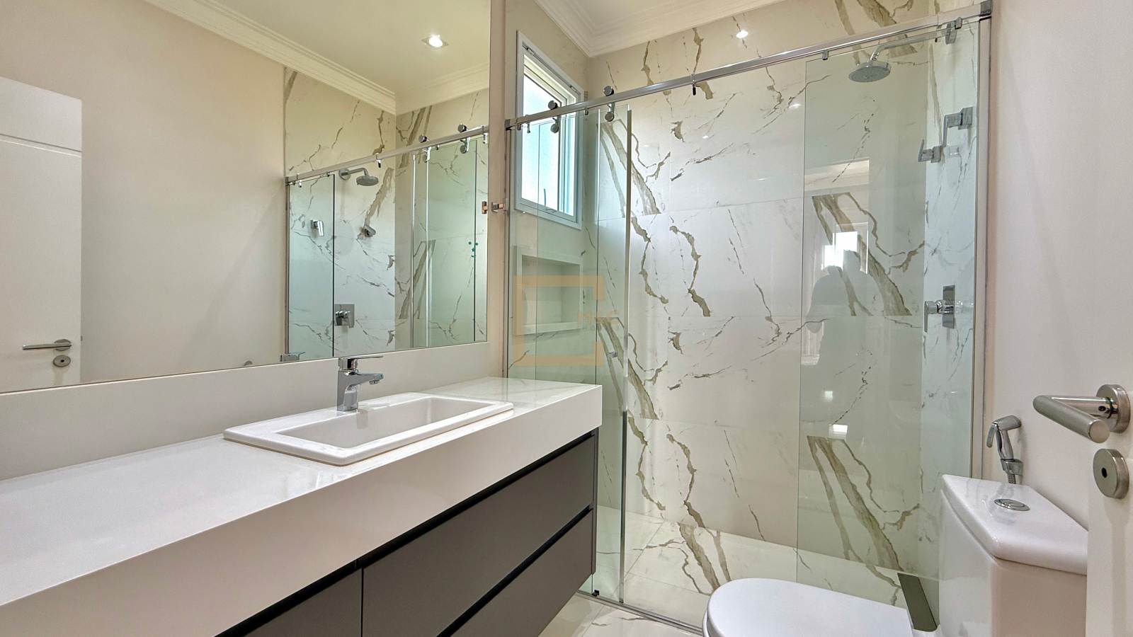 4 suítes, muito bem distribuídas em uma área construída de 430 m². A casa já está totalmente mobiliada e decorada, prontíssima para morar! Os móveis fixos são, em sua maioria, da ID Móveis, com exceção do espaço gourmet, que é assinado pela Kitchens. A infraestrutura é completa, com toda comodidade que a sua família busca!