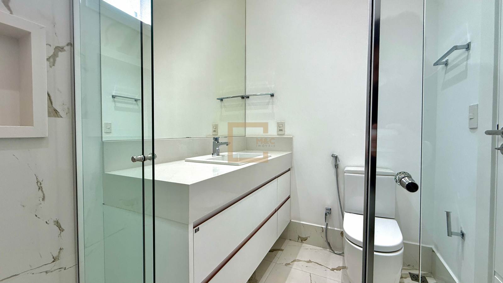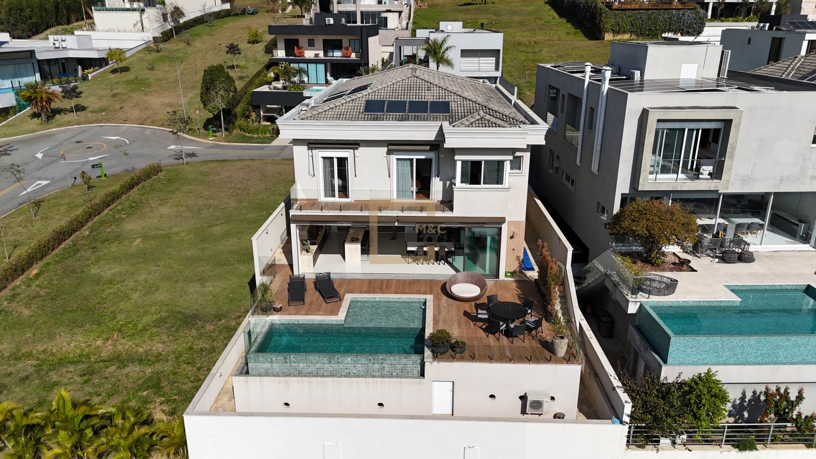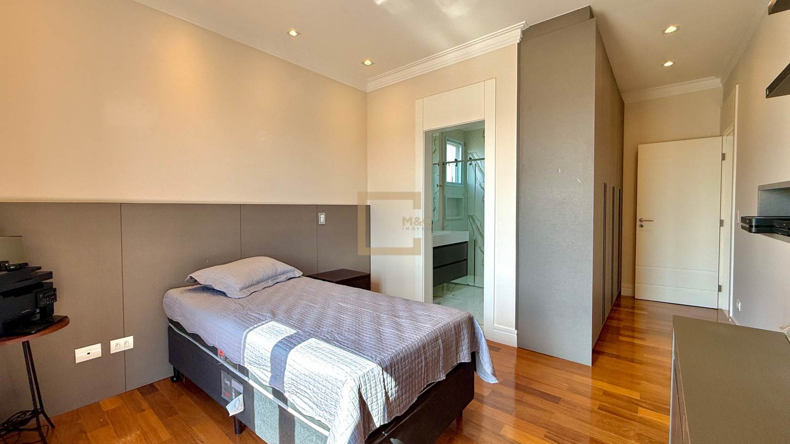 4 suítes, muito bem distribuídas em uma área construída de 430 m². A casa já está totalmente mobiliada e decorada, prontíssima para morar! Os móveis fixos são, em sua maioria, da ID Móveis, com exceção do espaço gourmet, que é assinado pela Kitchens. A infraestrutura é completa, com toda comodidade que a sua família busca!