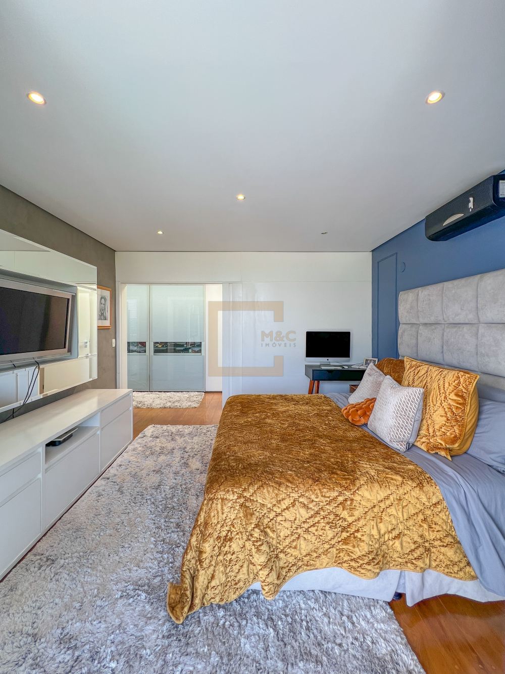 São 4 suítes, 2 delas com banheira de hidromassagem, a master com closet e armários.