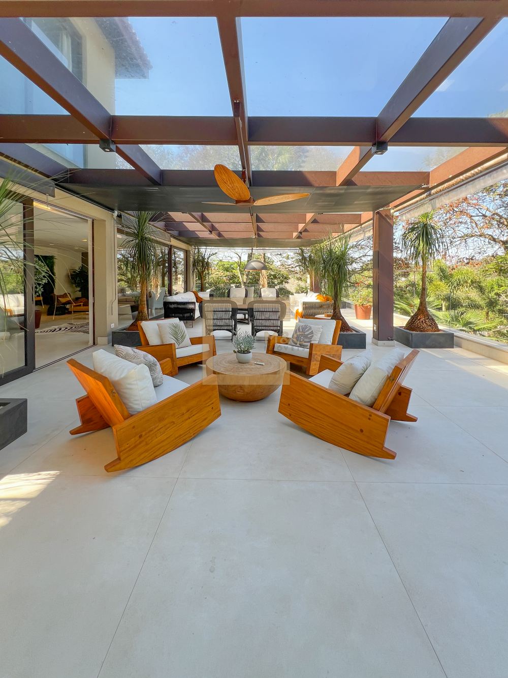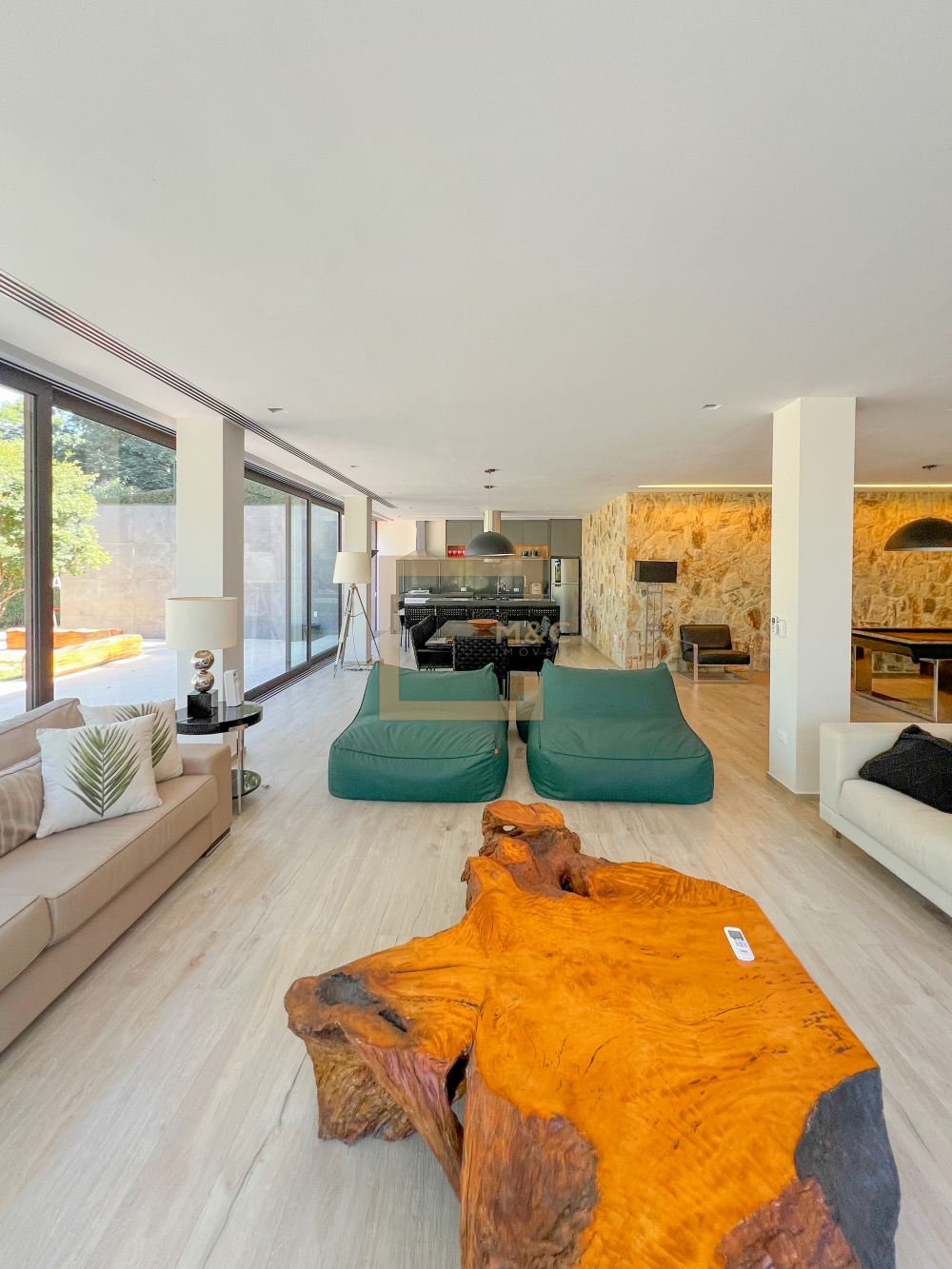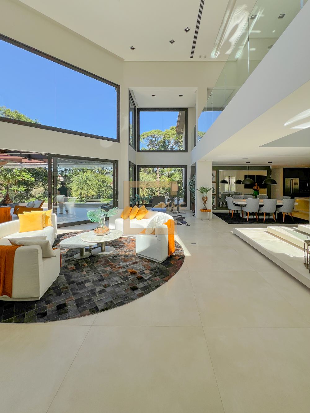 Lindo living com pé direito de 8 metros integrado a salas de lareira, jantar e home;