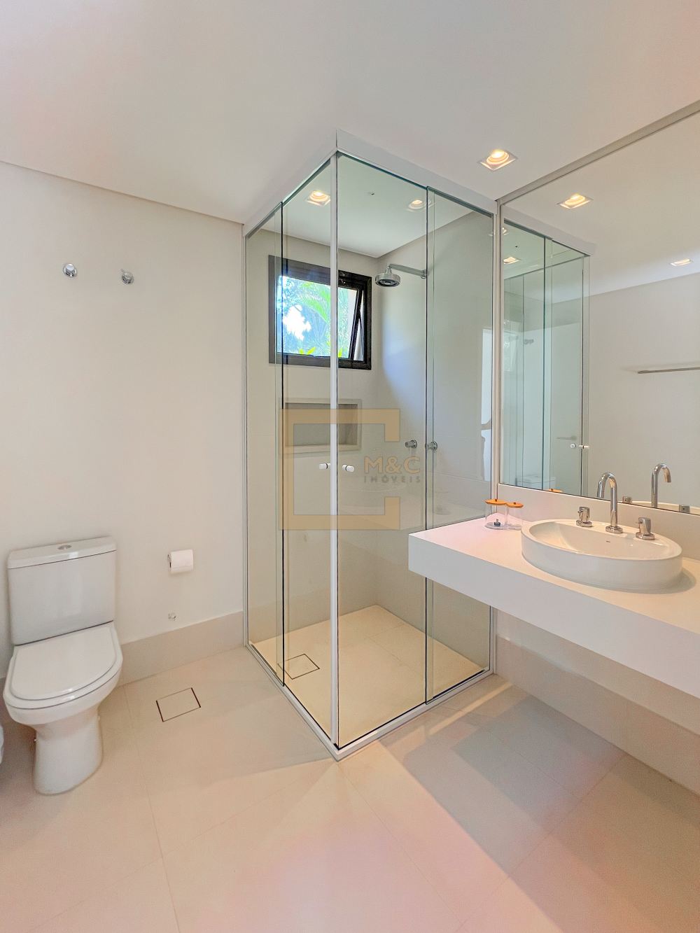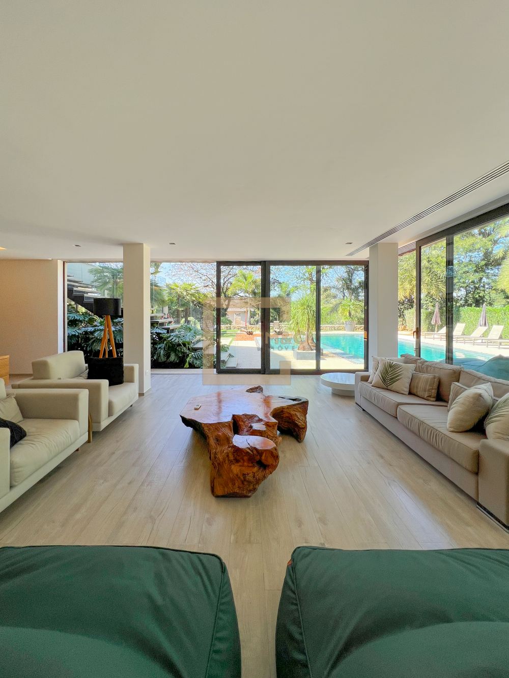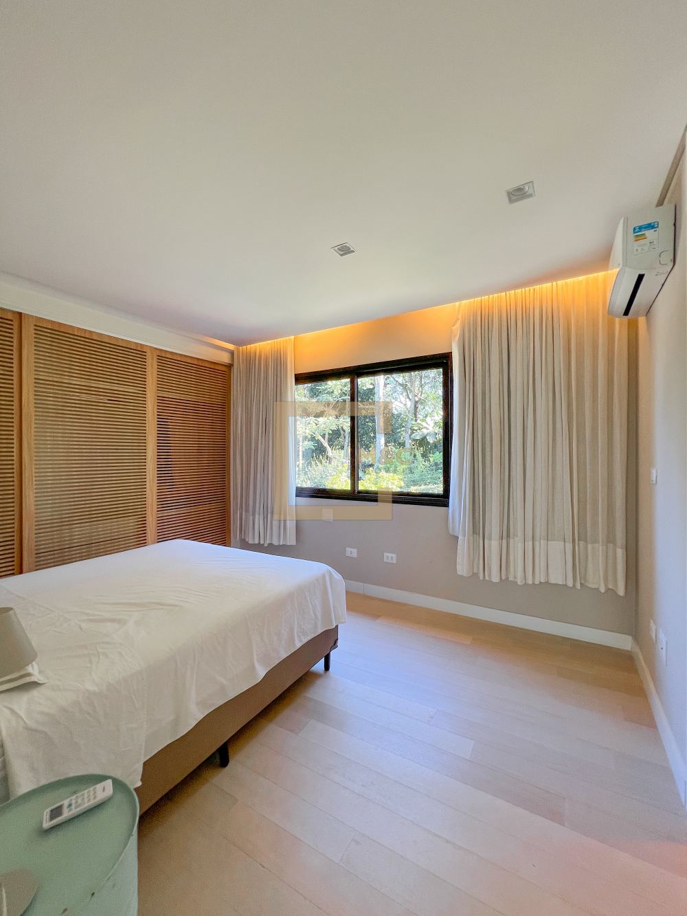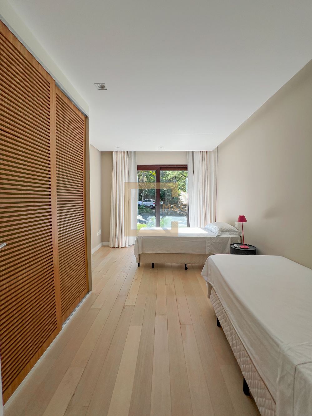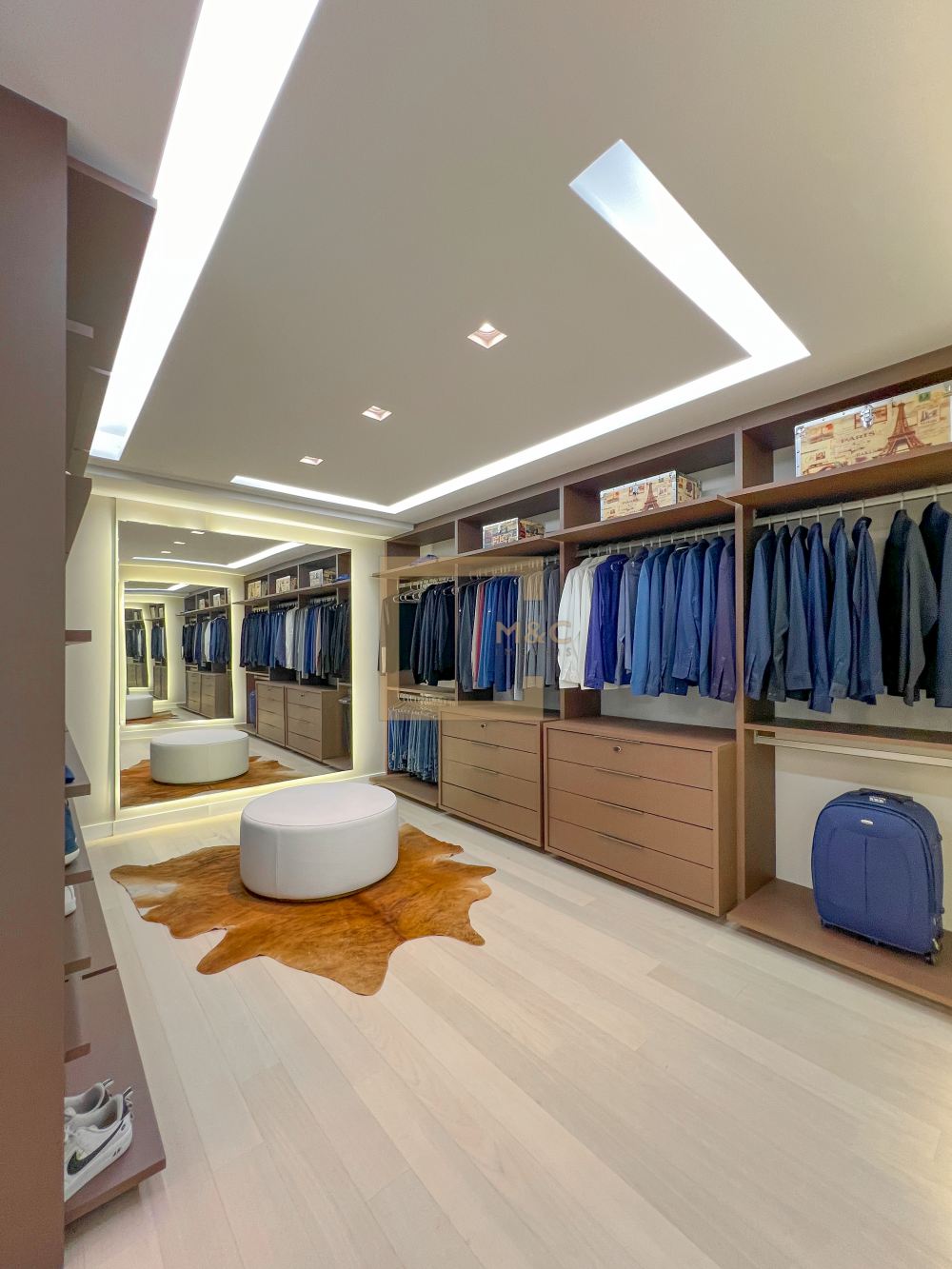 Acesso às suítes por passarelas suspensas com vista para o living e área social, sendo 4 suítes, todas equipadas com ar condicionado, marcenaria, boxes do chão ao teto, sendo a principal com walk-in closet, banheiro com cuba dupla, dois chuveiros e banheira de hidromassagem casal, com linda vista para área verde.