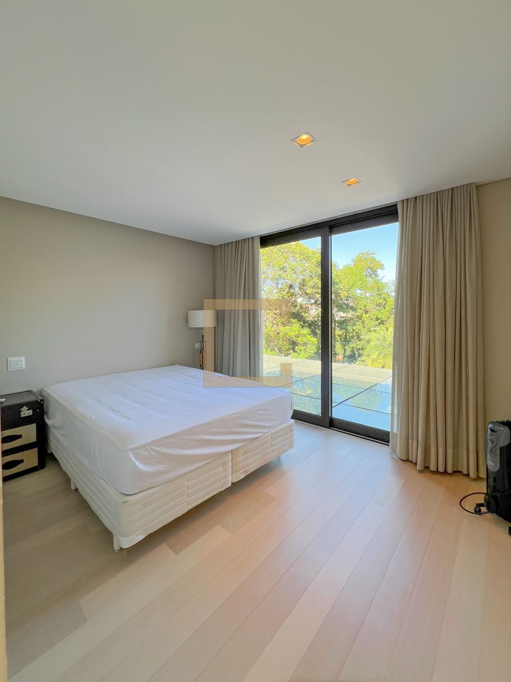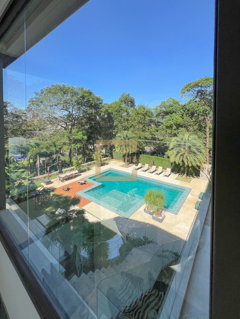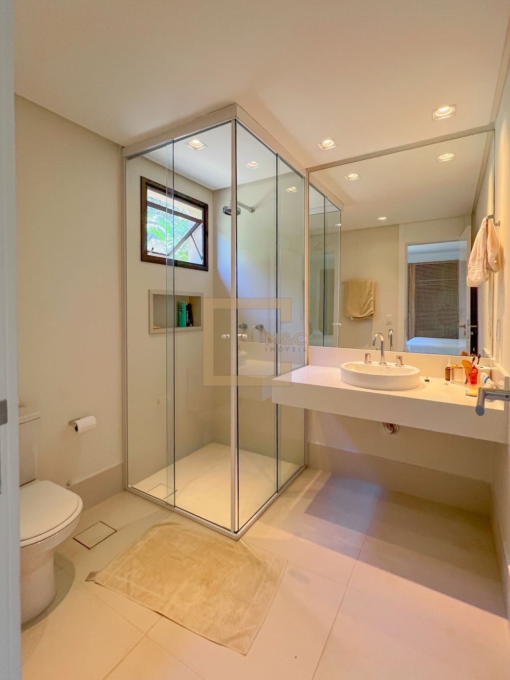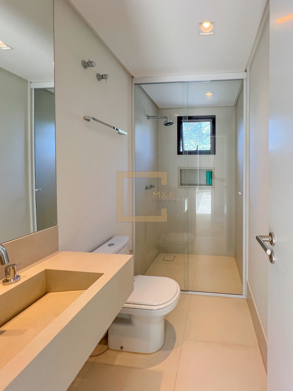 Acesso às suítes por passarelas suspensas com vista para o living e área social, sendo 4 suítes, todas equipadas com ar condicionado, marcenaria, boxes do chão ao teto, sendo a principal com walk-in closet, banheiro com cuba dupla, dois chuveiros e banheira de hidromassagem casal, com linda vista para área verde.