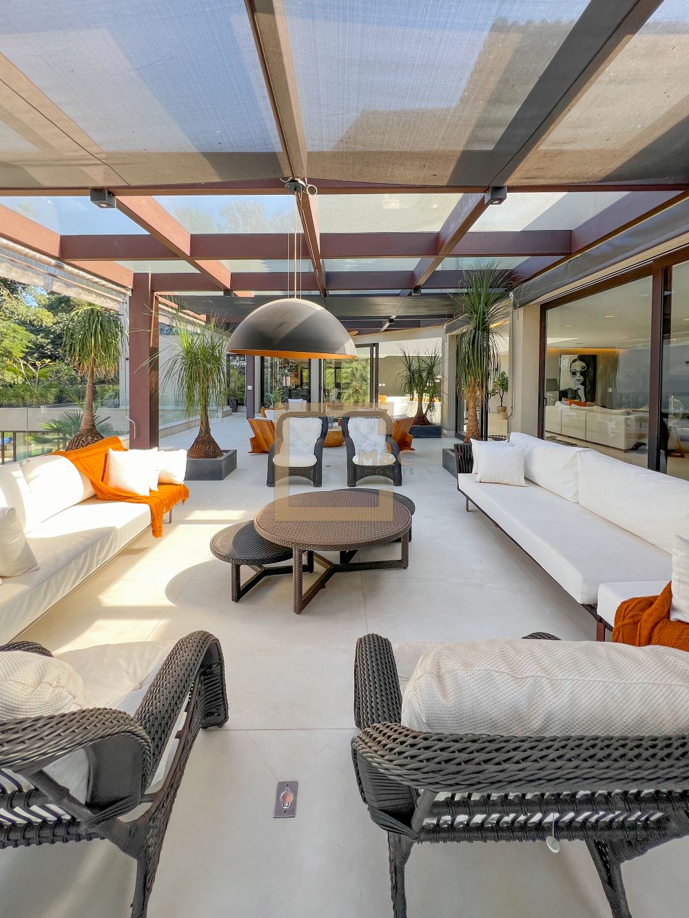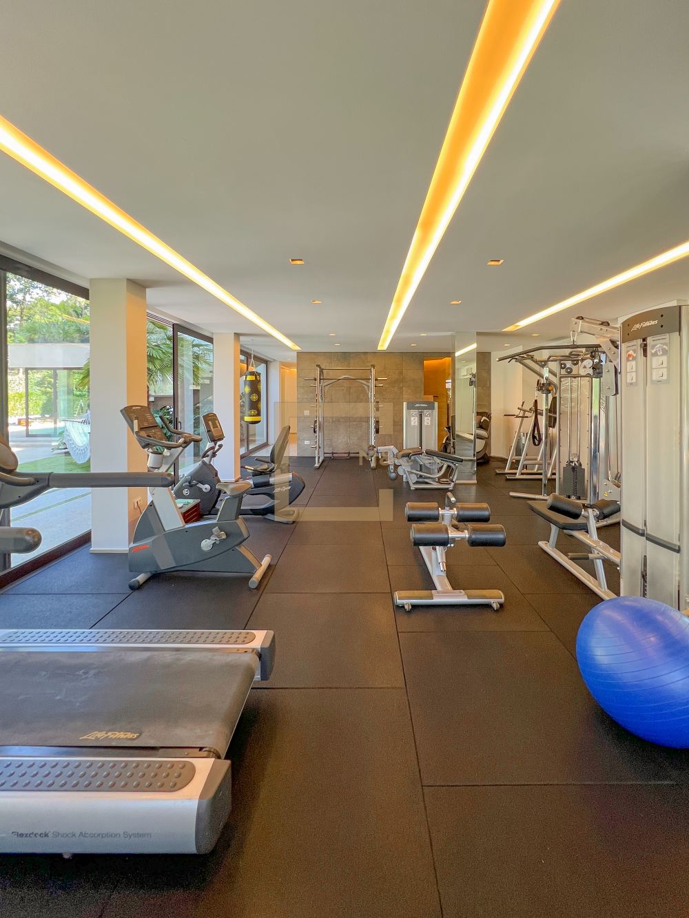 Salas envidraçadas com um sistema de ar condicionado central, voltadas para varanda, integradas a área verde e piscina;
