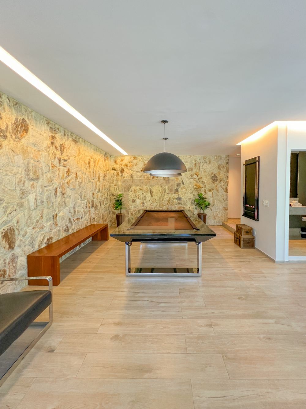 Amplo quintal complementado por belo projeto paisagístico, belíssima piscina com aquecimento solar, área gourmet completa e equipada, espaço para jogos, home theater, academia completa com ar condicionado e , suíte para funcionários.