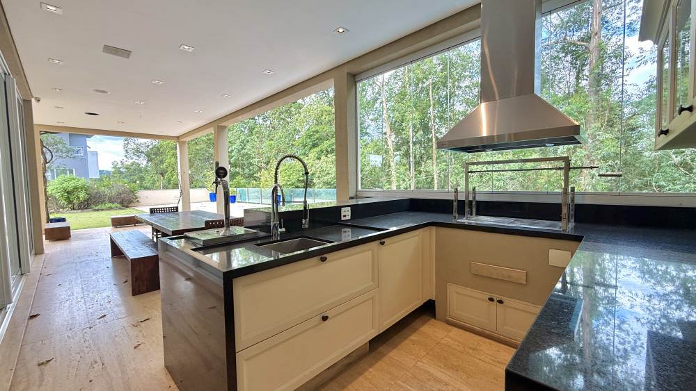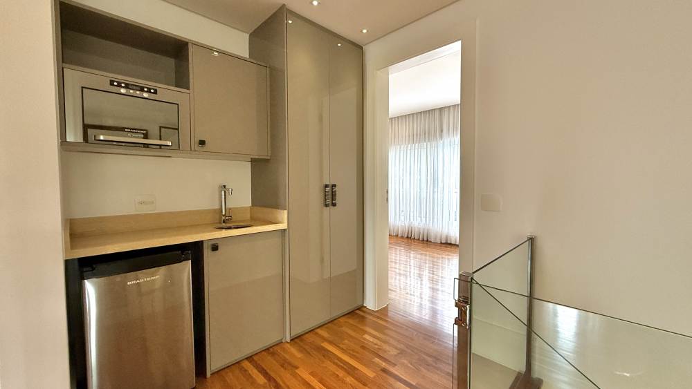 O acabamento é impecável! Marcenaria Florense, repleta de mármores, com pisos em madeira cumaru no pavimento superior e uma cozinha completa de eletrodomésticos Viking.