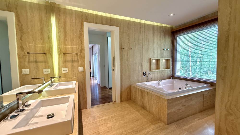 A área construída é de 479,44 m² - você terá espaço de sobra para viver momentos inesquecíveis. E as comodidades não param por aí! A casa conta com aquecimento solar, banheira de hidromassagem, churrasqueira, espaço gourmet, fechadura digital, sauna e até uma lareira para os dias mais frios.