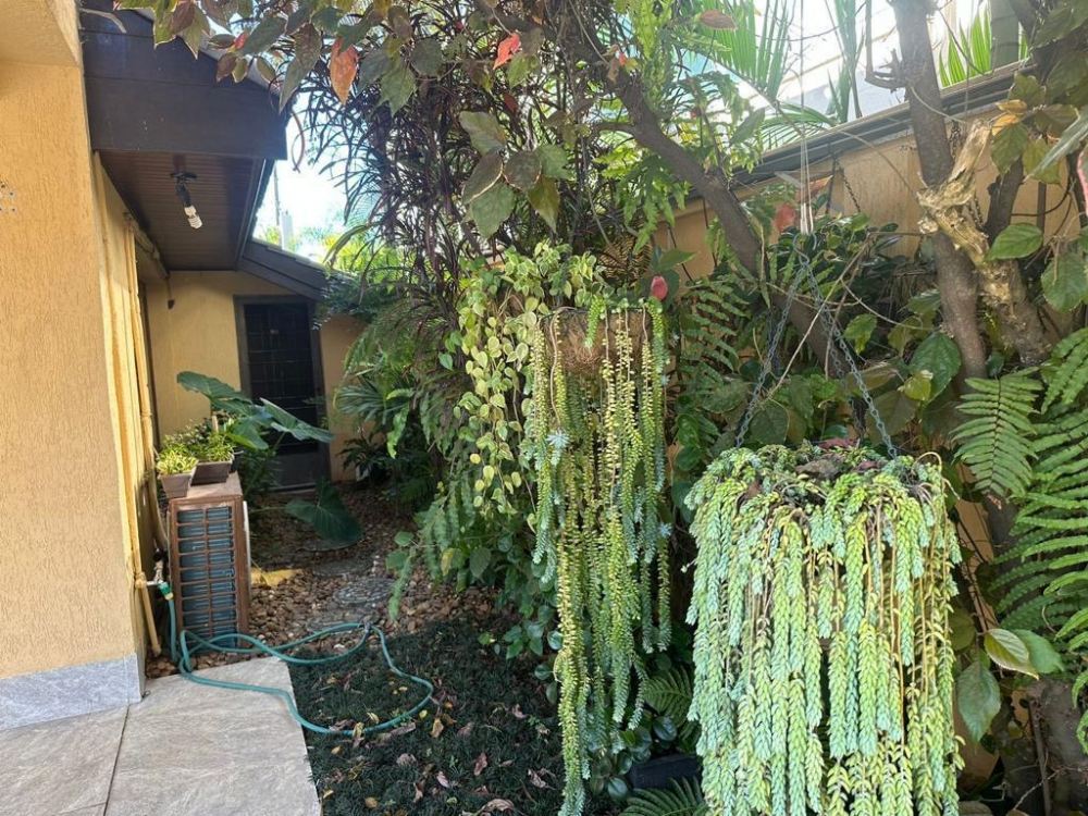 Há dependência para colaboradores, escritório e sótão acessível com pé direito de 2 metros. A área de lazer é composta por um belo gramado, piscina, churrasqueira completa com banheiro, e opção de sauna ou depósito. Adicionais incluem boiler de 800 litros com placas de aquecimento solar, 4 caixas de água totalizando 4.000 litros, vagas para 6 carros, jardim com paisagismo e iluminação, piscina com infraestrutura para aquecimento solar e troca de calor, SPA iluminado, e ar-condicionado Inverter em todos os cômodos. Há também um ateliê na parte térrea da casa.
