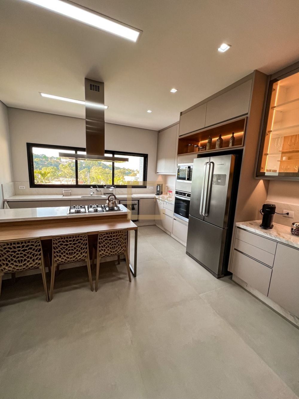 Área gourmet com cozinha completa com cooktop , forno e churrasqueira
