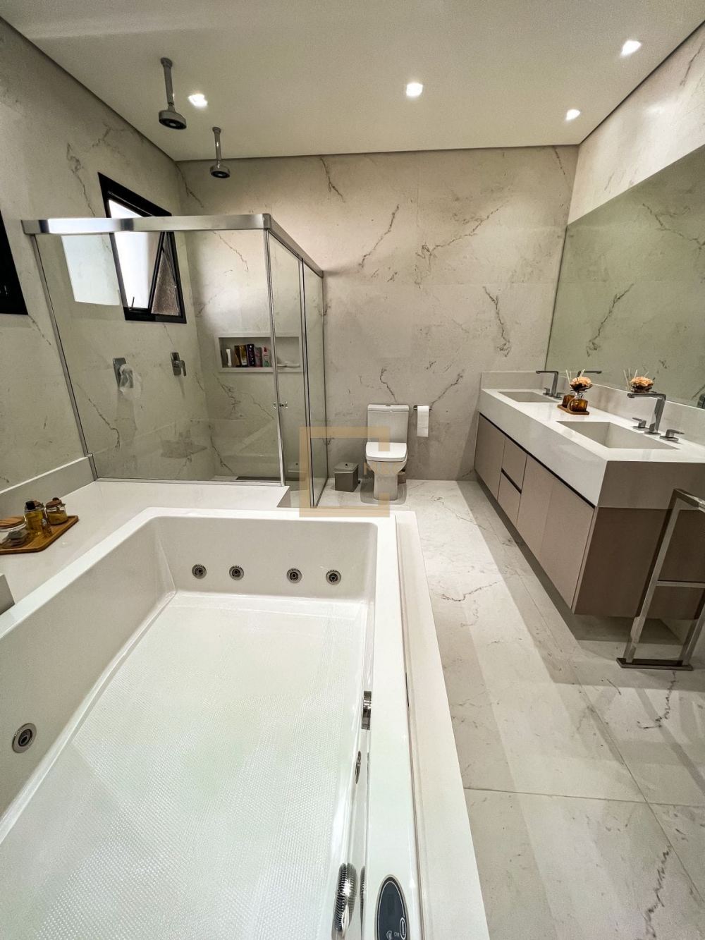 4 suites, a master com amplo closet , hidro, ducha e pia dupla, iluminação embutida em LED, varanda com linda vista as demais com closet