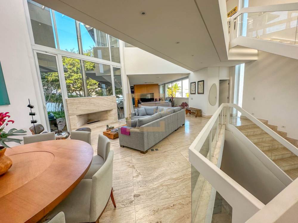 Amplo living,  escritório (que pode ser aberto ou fechado para a sala de TV, ambos com ar condicionado).