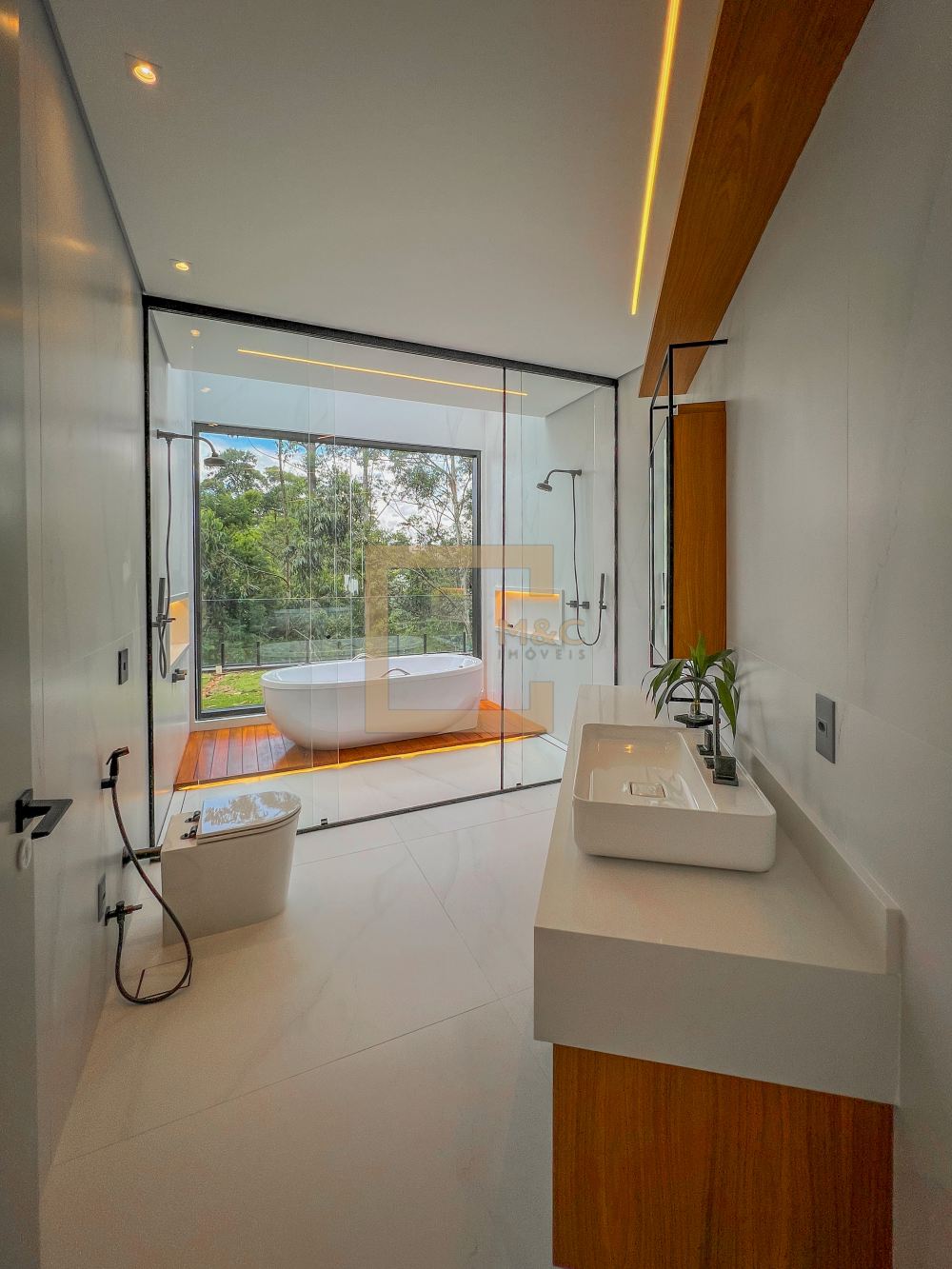 Um conceito diferente de se morar, ousou em todos os ambientes da casa, trazendo sofisticação, elegância em meio a natureza, para proporcionar aos moradores a integração com toda a Família.