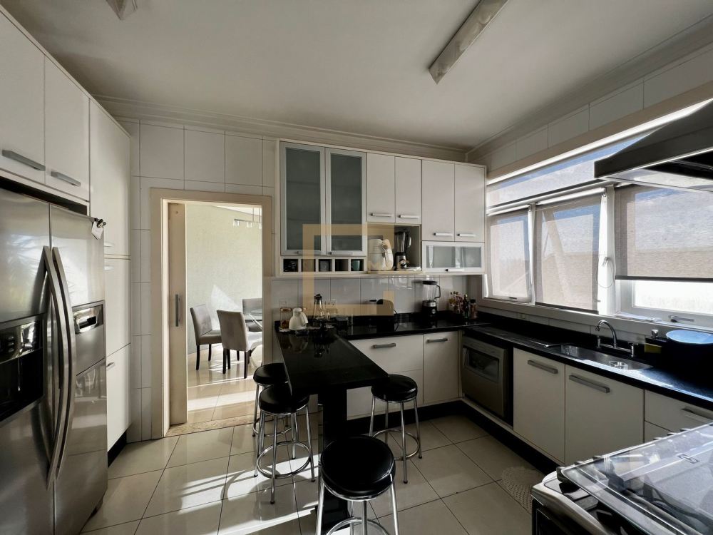 A cozinha possui móveis planejados lindos, e a área gourmet é completa, com churrasqueira, piscina e uma vista para as áreas verdes. Também há um quarto com banheiro separado para funcionários. Lavanderia e despensa.