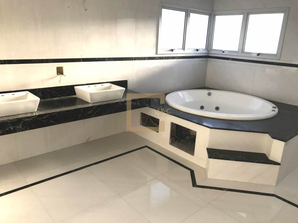 A casa possui 1 Suíte principal com sacada Individual 2 banheiros e 2 closets, Banheiros com acabamento em Mármores e 4 Suítes completas todas com sacada Individual closet e banheiros com acabamento em mármores, sendo duas com banheiras.