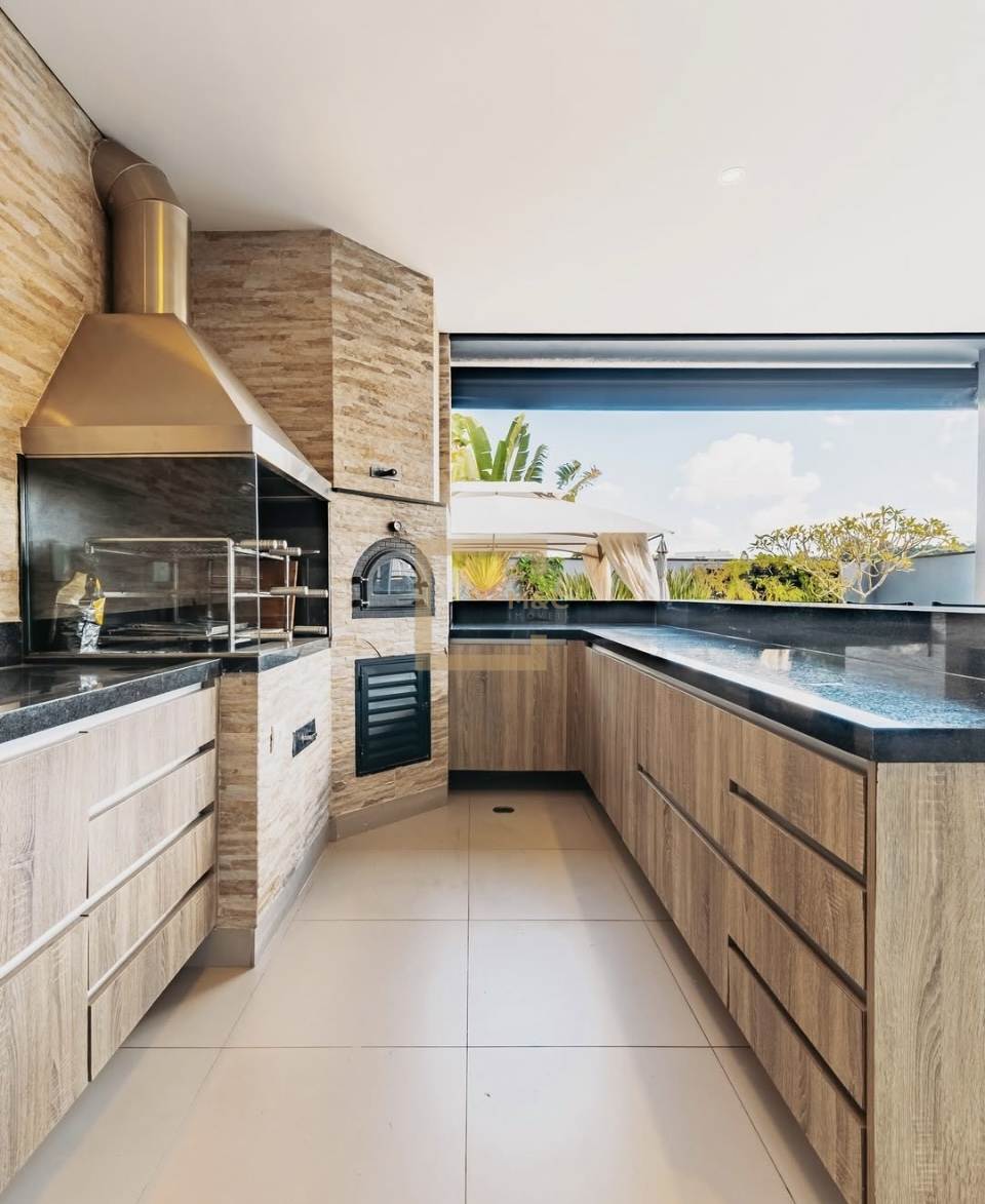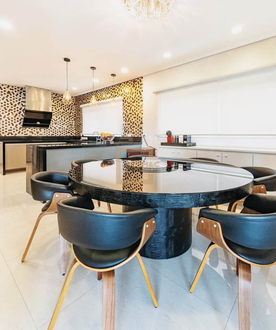 Cozinha com ilha ,sala de almoco, repleta de armários.