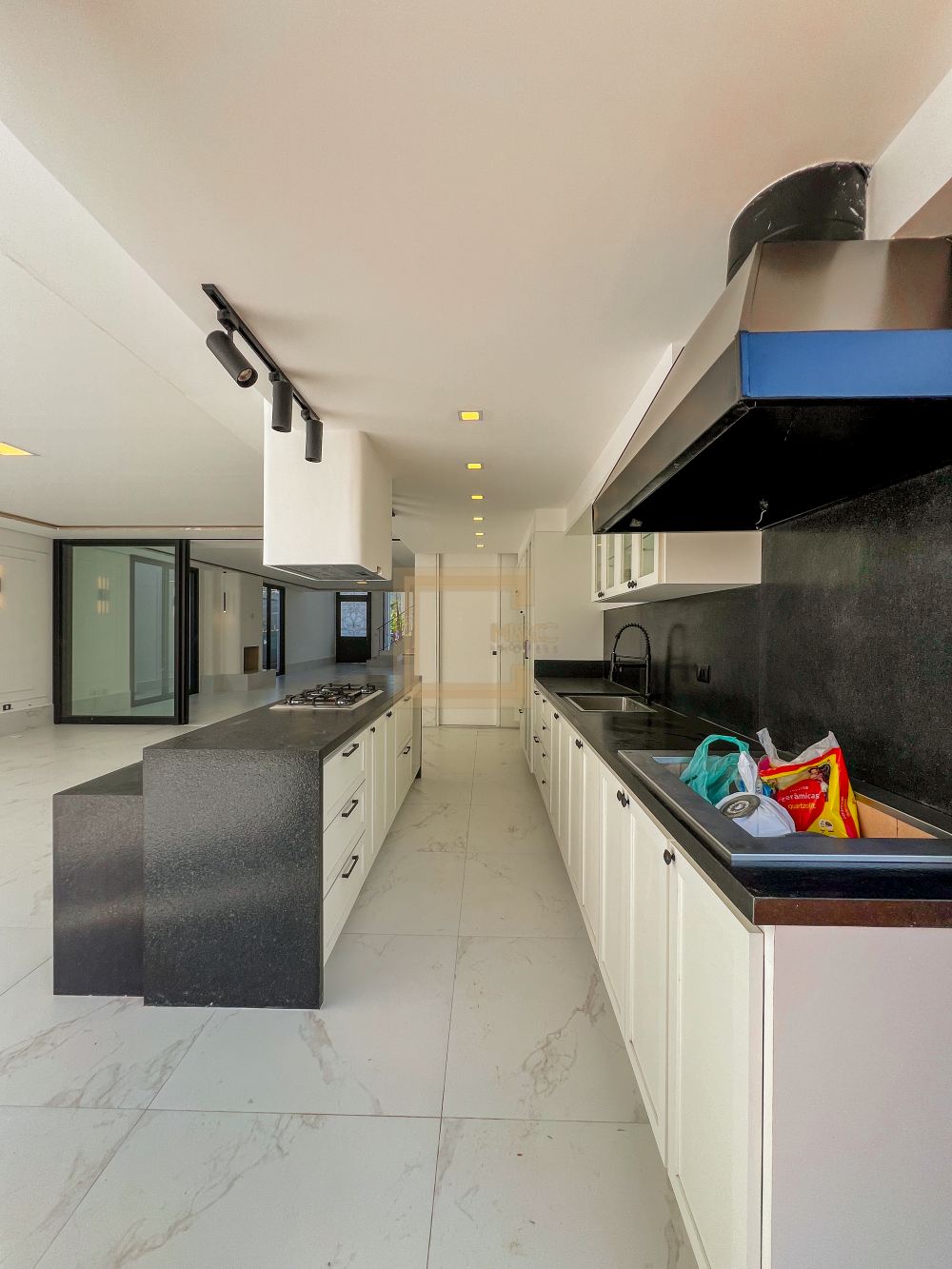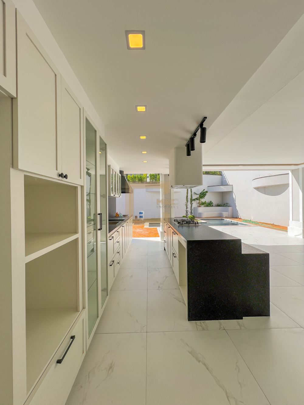 Cozinha completa com ilha, integrado ao Gourmet com fogão, Balcão de apoio e fogão com coifa