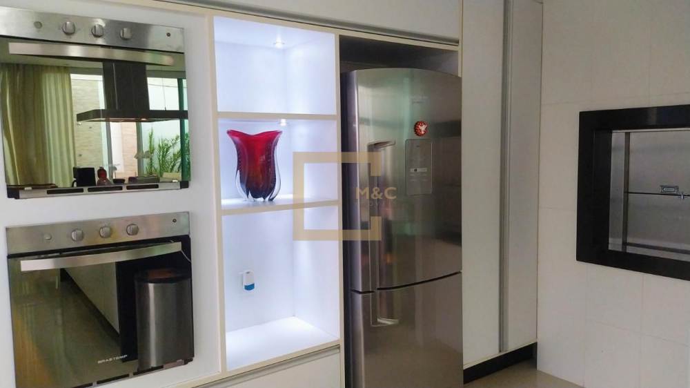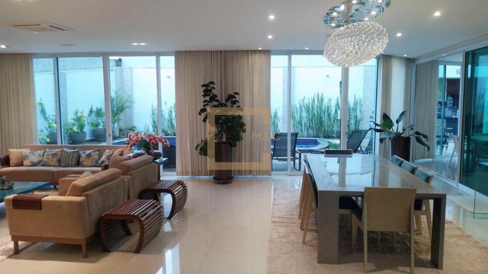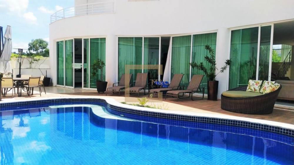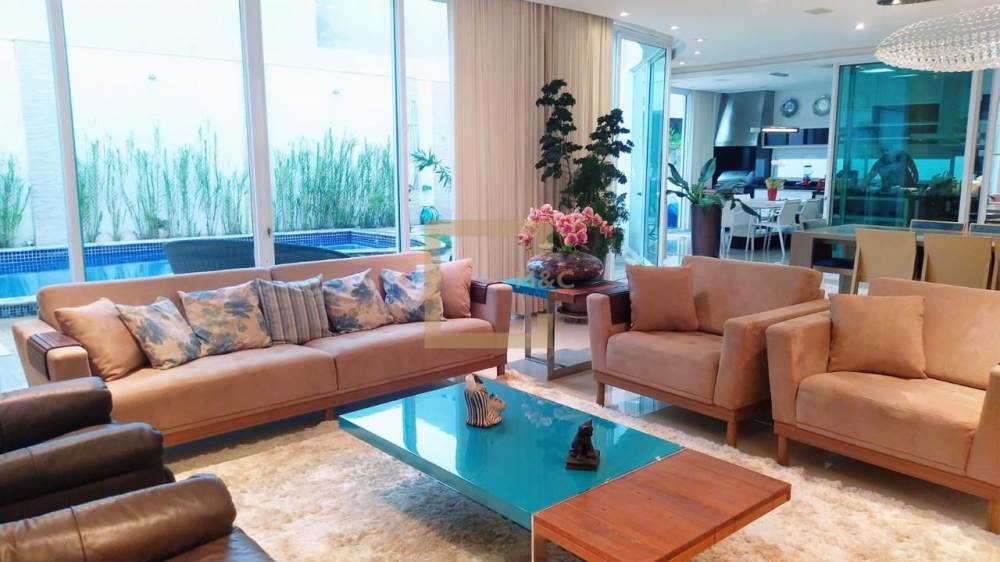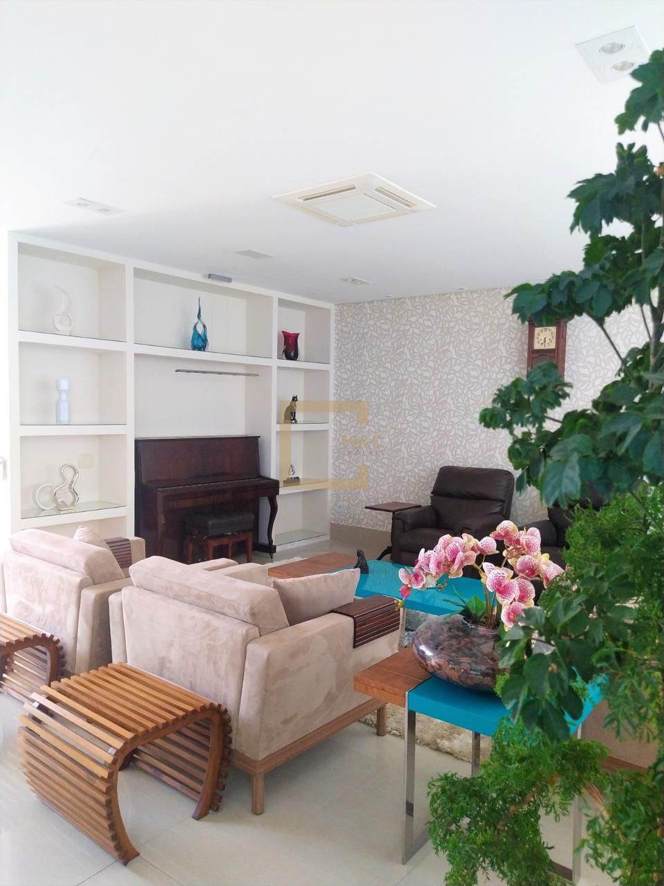Casa semi mobiliada com 5 suítes, com varandas, a master com hidro, 1 suíte no térreo e a master de 56 m² com escritório, secador de toalhas.